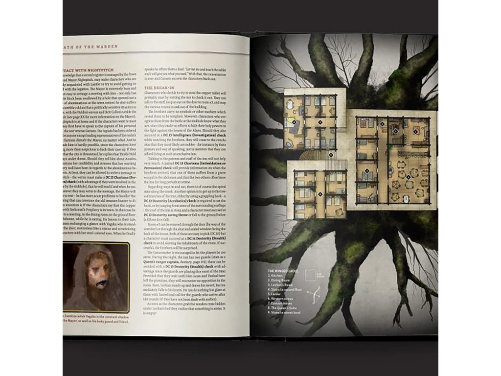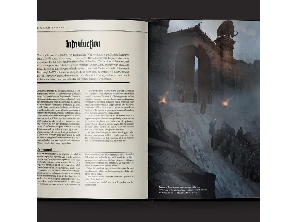 Príručka Ruins of Symbaroum 5E - The Throne of Thorns Aj ti ponúka 2 dobrodružstvá pre švédsku fantasy hru na hrdinov Symbaroum RPG, kompatibilné s 5E. Dobrodružstvá sú vhodné pre postavy na 7. až 9. úrovni. Príručka je v angličtine. Perilous expeditions do temných depthov z Davokar Forest; deadly encounters with murderous cultists, hostile elves, a bojovníky z Beast Clan; intense faction play and political maneuvering - budete experimentovať všetky tieto a viac, keď sa epic quest pre legendárny Throne of Thorns begins! Tento hardcover, full-color book prezentuje prvých dvoch epizód acclaimed adventure chronicle Throne Thorns, adapted for play with 5e ruleset and Ruins of Symbaroum setting books. Vyhľadať stohy, aby boli vysoké, konkurentov bez ohľadu na to, a darkness ever present, pre les Davokar je o tom awaken. Vnútri túto knihu, ste ll find: Dvoch celých predĺženia, Wrath of Warden a Witch Hammer , pre charaktery úrovní 7-9. More than 20 farebné mapy, detailné adventure locations in towns, forests, and ruins. Over 50 stat blokov, ktoré non-player pokrývajú rôzne typy - monsters, potenciálne allies or adversaries, ako well as famous/notorious individuals. A dozen journey events, ktoré môžu byť použité na získanie charakteru cestovania v lese, ešte viac exciting. More than 10 handouts to be used počas play, dopĺňajúc dôležité informácie pre sociálne challenges a problem-solving. Táto kniha je dostupná v ruinách Symbaroum Core Setting Books - Player s Guide, Gamemaster s Guide, & Bestiary.