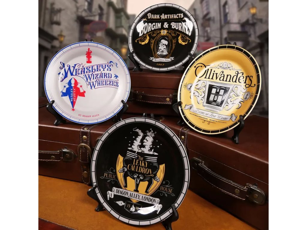 Dopraj si obed, akoby si práve zasadol k stolu v srdci Priečnej ulice! Táto štýlová sada 4 tanierov ťa prenesie do sveta kúziel zakaždým, keď sadneš k stolu. Každý tanier nesie iný motív z legendárnych miest – napríklad Olivanderove paličky alebo hostinec Deravý kotol! Taniere majú ideálnu veľkosť 21 cm, sú keramické, pevné a krásne farebné. Skvelý darček pre každého fanúšika, alebo jednoducho len pre radosť sebe. Taniere sú vhodné do umývačky a mikrovlnky.