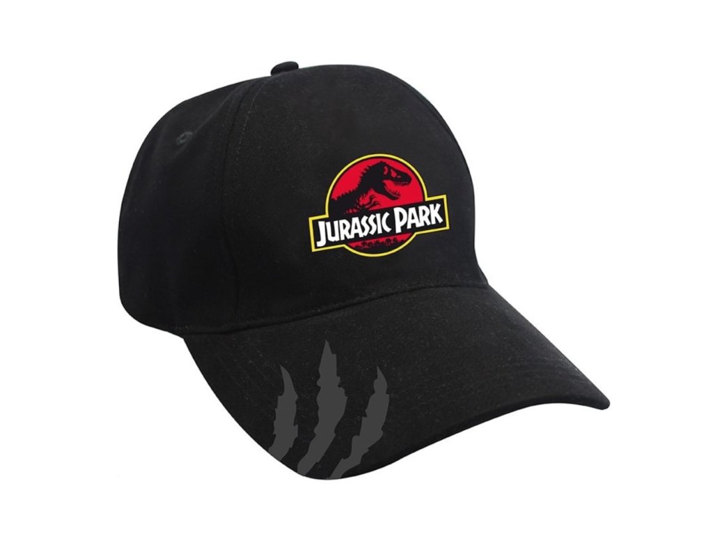 Klasická čierna šiltovka s vyšitým logom Jurassic Park. Veľkosť sa nastvuje pomocou pútka s kovovou prackou.