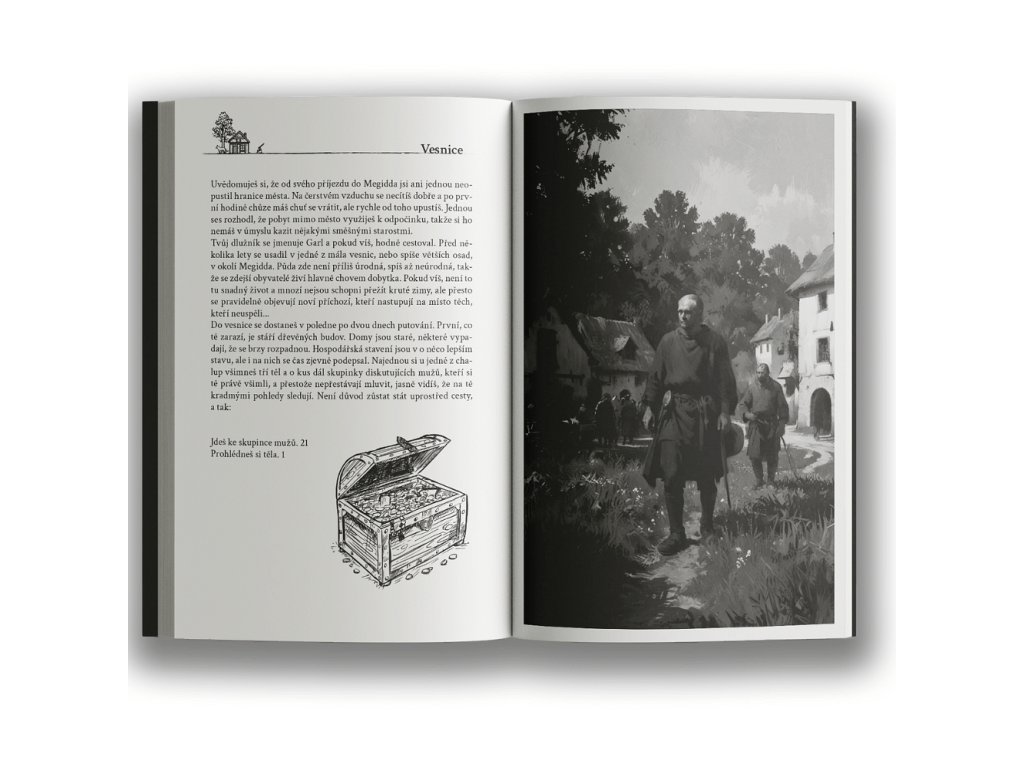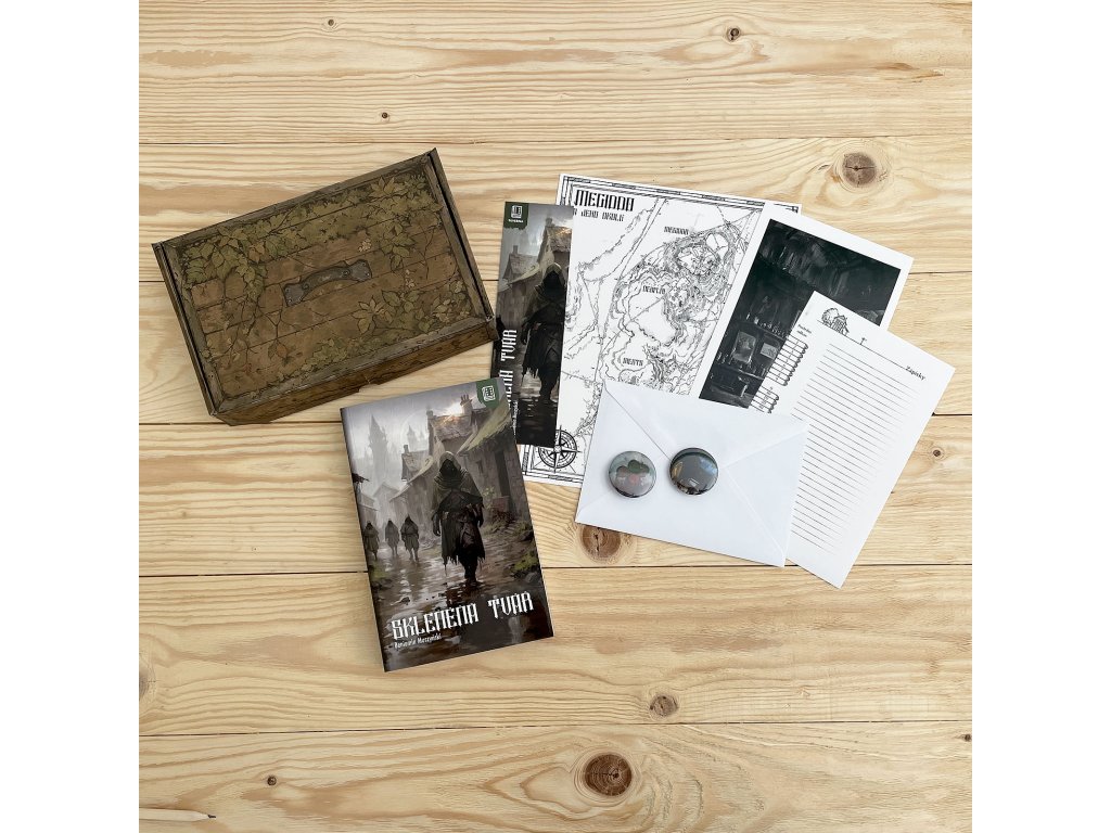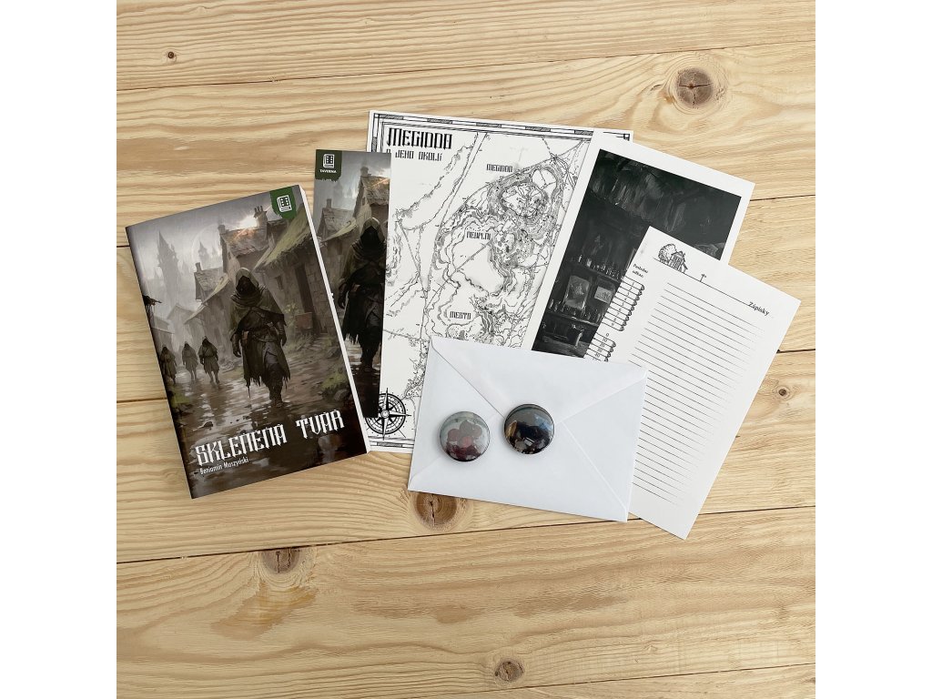 Prebúdzaš sa v troskách rozboreného mesta Megiddo. Nepamätáš si svoje meno, minulosť ani dôvod, prečo si sa tu ocitol. Jediné, čo ti zostalo, je sklenená maska, ktorá halí tvoju tvár posiatu tajomnými symbolmi. Nevieš, čo znamenajú, rovnako ako netušíš, kto si. Si Tieň. Cudzinec vo vlastnom tele, bez minulosti, bez cieľa. Kto si? Prečo si tu? A čo keď je pravda, po ktorej túžiš, desivejšia ako všetko, čo si si kedy dokázal predstaviť? Gamebook Beniamina Muszyńskiho je napínavou cestou za poznaním stratenej minulosti a všetkým, čo jej odhaľovanie prináša. V darčekovom boxe získaš okrem knihy aj množstvo úžasných bonusov. Box obsahuje: úvodný list do dobroružstva ceruzka Sklenená tvár papier na zápisky a sledovanie odkazov záložka 2 placky s achievementy číslovaný print ilustrácie (každá séria je obmedzená na 50 výtlačkov) mapa Megidda a jeho okolie