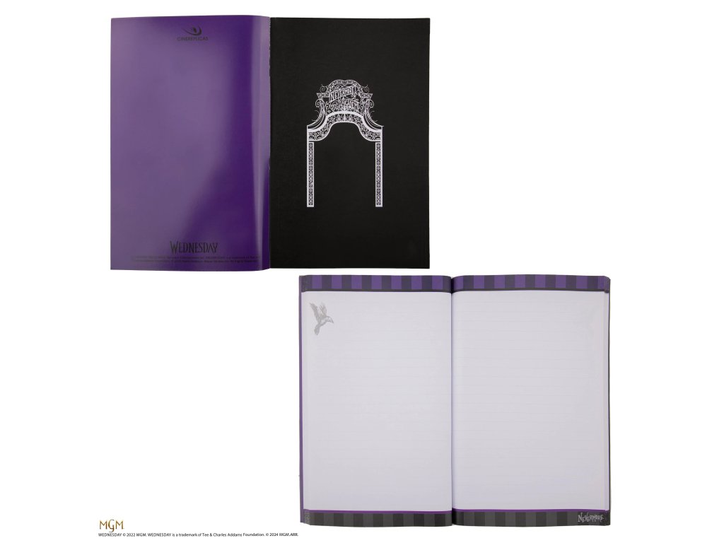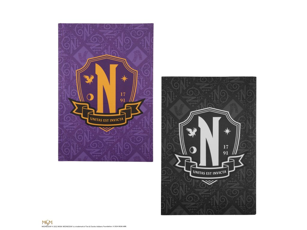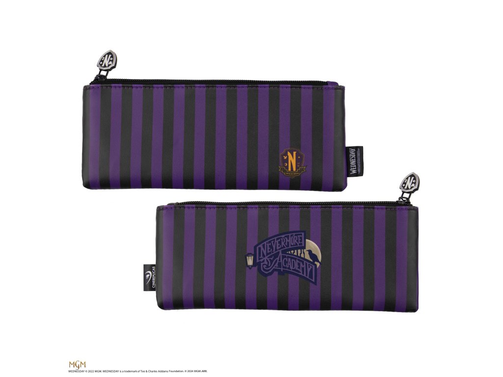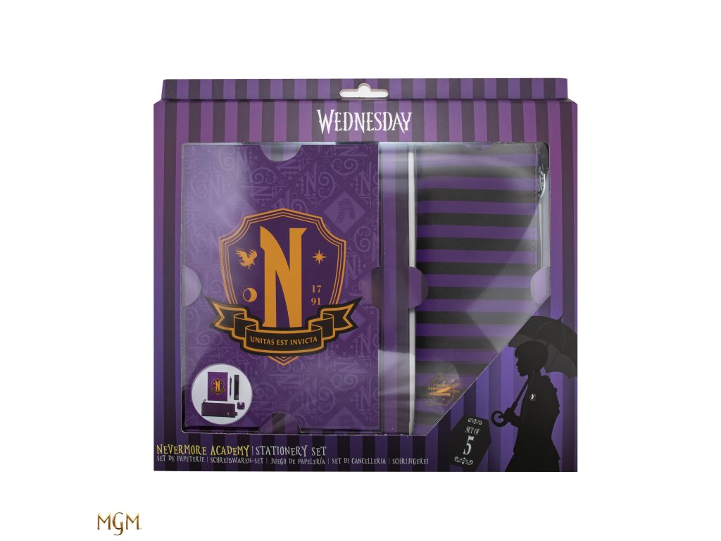 Školské potreby inšpirované Nevermore Academy a ikonickou Wednesday Addams si môžeš pripomenúť, že byť iný je tá najlepšia cesta. Súprava obsahuje elegantný fialový peračník, zápisník s motívom Nevermore Academy, pero, gumu a pravítko – všetko, čo potrebuješ na písanie, kreslenie aj organizáciu svojich nápadov. Každý kúsok ti pomôže nielen pri štúdiu! Či si študent, v práci alebo kreatívne duše, táto sada je dokonalým doplnkom pre temné duše!