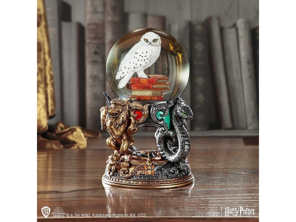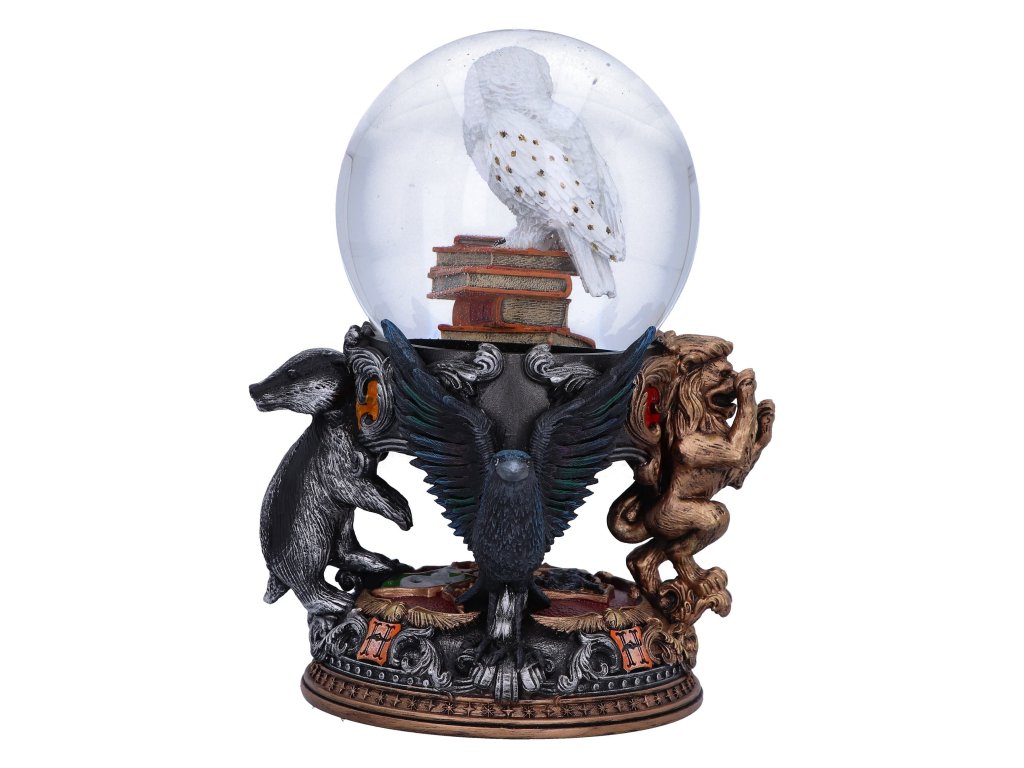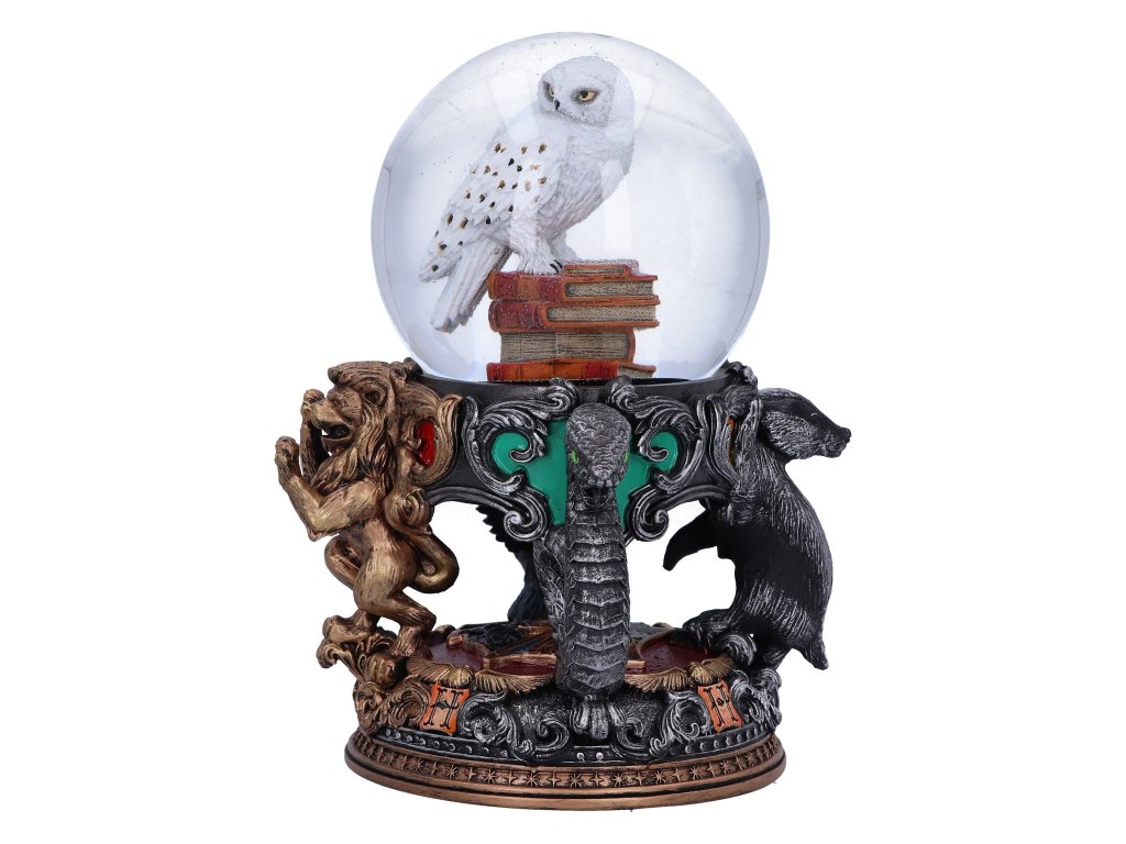 Snežítko s vernou kamarátkou Harry Pottera, sovou Hedvičkou, ktorú podopierajú štyri patróni bradavických koľají - krásny doplnok domácnosti aj pracovne každej čarodejnice a mága!