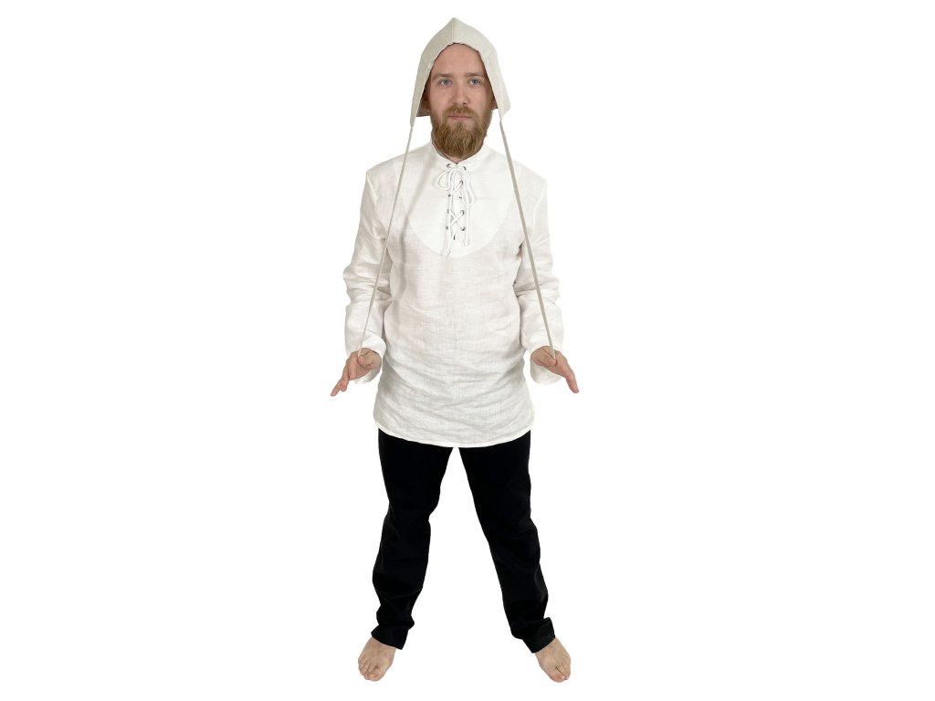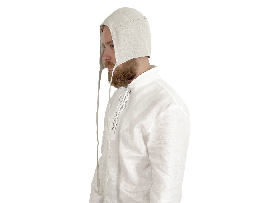 Stredoveká ľanová čiapka je praktický a verne zrekonštruovaný doplnok, vhodný pre historický kostým, larp alebo len pohodlné nosenie pod kapucňu či helmicu. Ušitá je z pevnej, ale príjemnej zmesovej látky – ľan v útku, bavlna v osnove zaisťujú prirodzený vzhľad a komfort. Čiapka skvele ladí k našim novým bruchom a vytvára tak základný, ale štýlovo zjednotený komplet do stredovekej domácnosti, na trhovisko alebo pod zbroj.