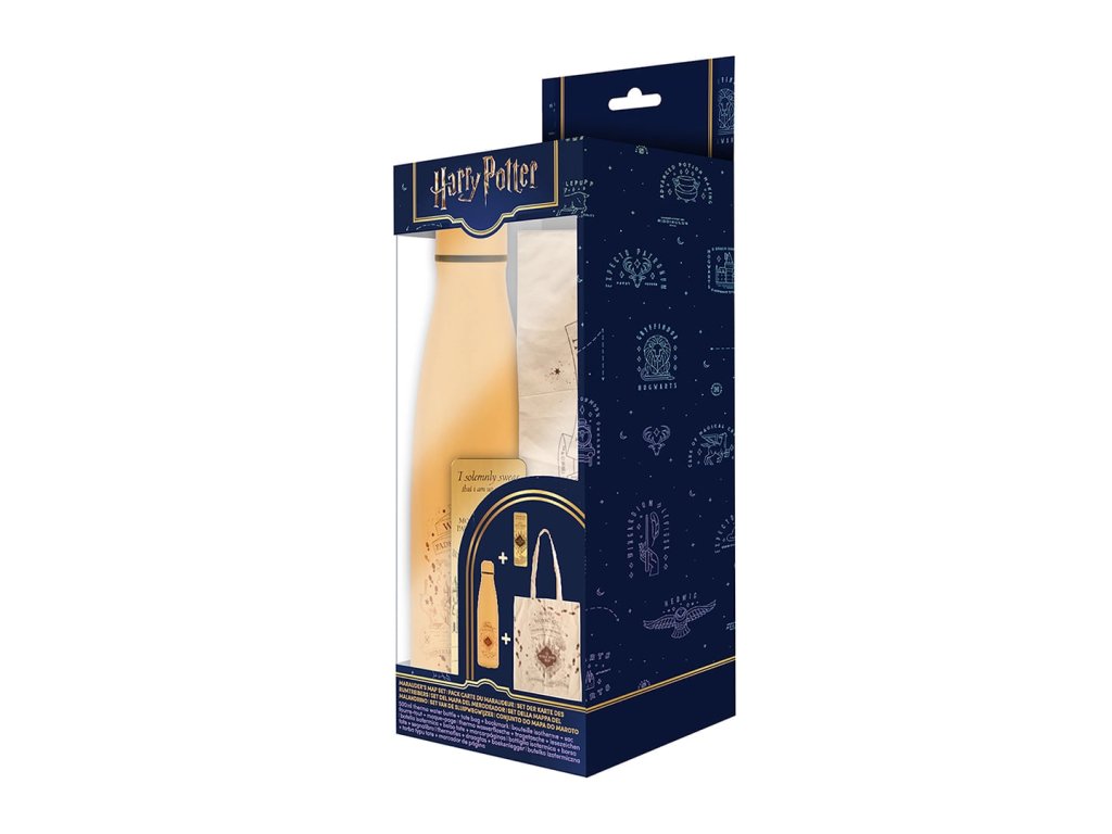 Slávnostne prisaháš, že si pripravený ku každej zle? Táto štýlová sada s motívom Pobertovho plánika je presne pre teba – alebo ako darček pre každého knihomoľa, ktorý miluje svet Harryho Pottera. Vnútri nájdeš: praktickú bavlnenú nákupnú tašku s potlačou plániku, elegantnú nerezovú termofľašu 500 ml, ktorá udrží nápoj teplý alebo studený až 15 hodín, a štýlovú kovovú záložku, vďaka ktorej už nikdy nestratíš stránku v žiadnej knihe. Praktická, štýlová a ideálna na každý výlet – či už do knižnice, do Rokfortu alebo len na bežný muklovský deň.