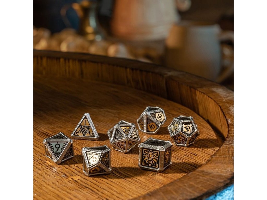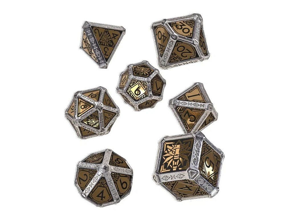 Kocky ako Blizzard, jeden z najmocnejších elixírov pre zaklínačov, do ktorého sa pridáva srdce golema! Sada hybridných kociek so symbolmi školy Vlka v sebe kombinuje kov a kompozit a hádzať s nimi bude skutočným pôžitkom. Balenie obsahuje 1x štyroch, 1x šiestich, 1x ôsmich, 1x desiatich, 1x dvanástich, 1x dvadsiatich stennú a 1x percentovú kocku.