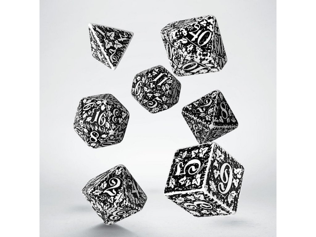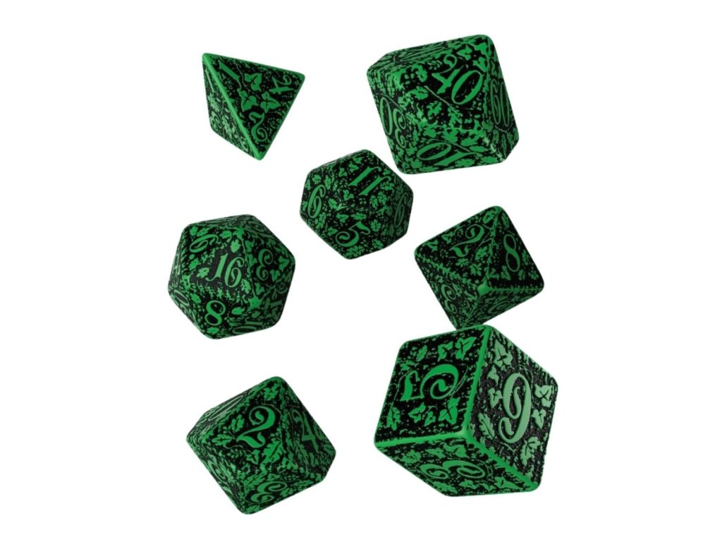 Sada nádherne spracovaných kociek s prírodnými motívmi, skvelý doplnok pre hráčov hier na hrdinov. Sada obsahuje sedem kociek: štyroch, šiestich, ôsmich, desiatich, dvanástich, dvadsiatich stennú a percentovú kocku, dodávame ju v darčekovej krabičke.