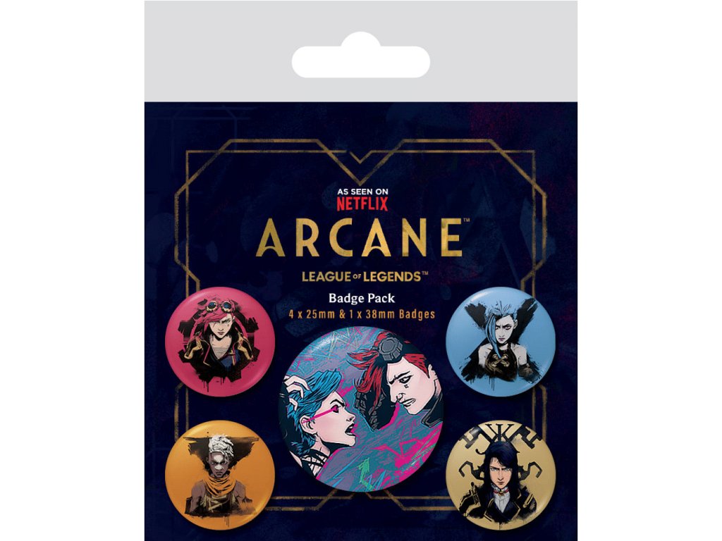 V sade nájdeš 5 ks odznakov s tvárami postav z tvojho obľúbeného animovaného trháku Arcane, medzi ktorými nechýba napríklad Jinx, Vi alebo Ekko. Skvelý a štýlový doplnok pre tvoj batoh, bundu alebo kabelku. Balenie obsahuje 1x placku s priemerom 3,8 cm a 4x placky s priemerom 2,5 cm.