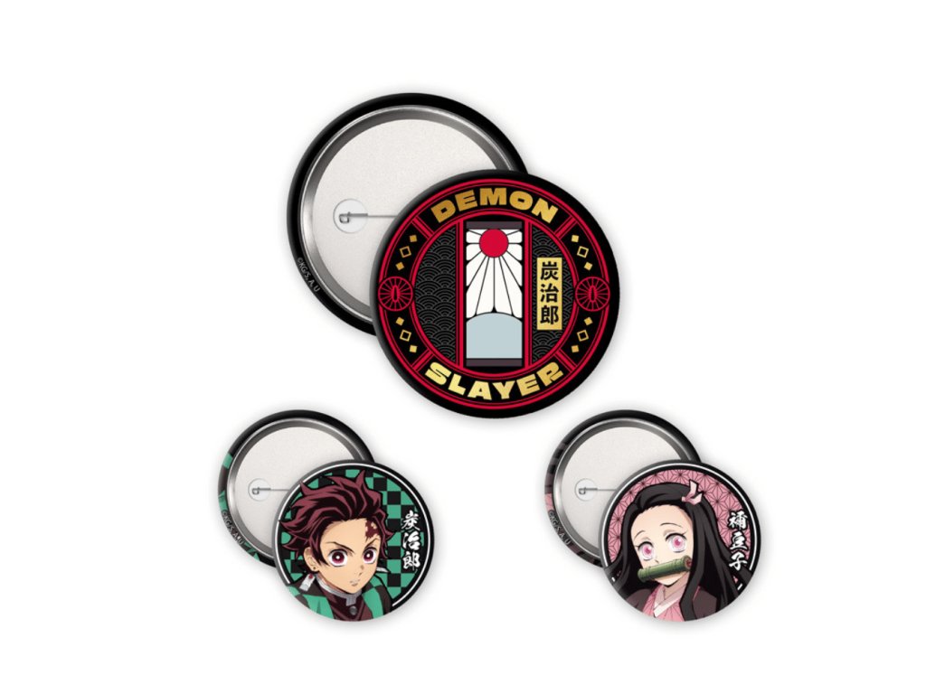 Sada obsahuje 3 placky pre fanúšikov anime Demon Slayer. Jedna placka je s priemerom 5 cm a dve placky majú priemer 3,2 cm.