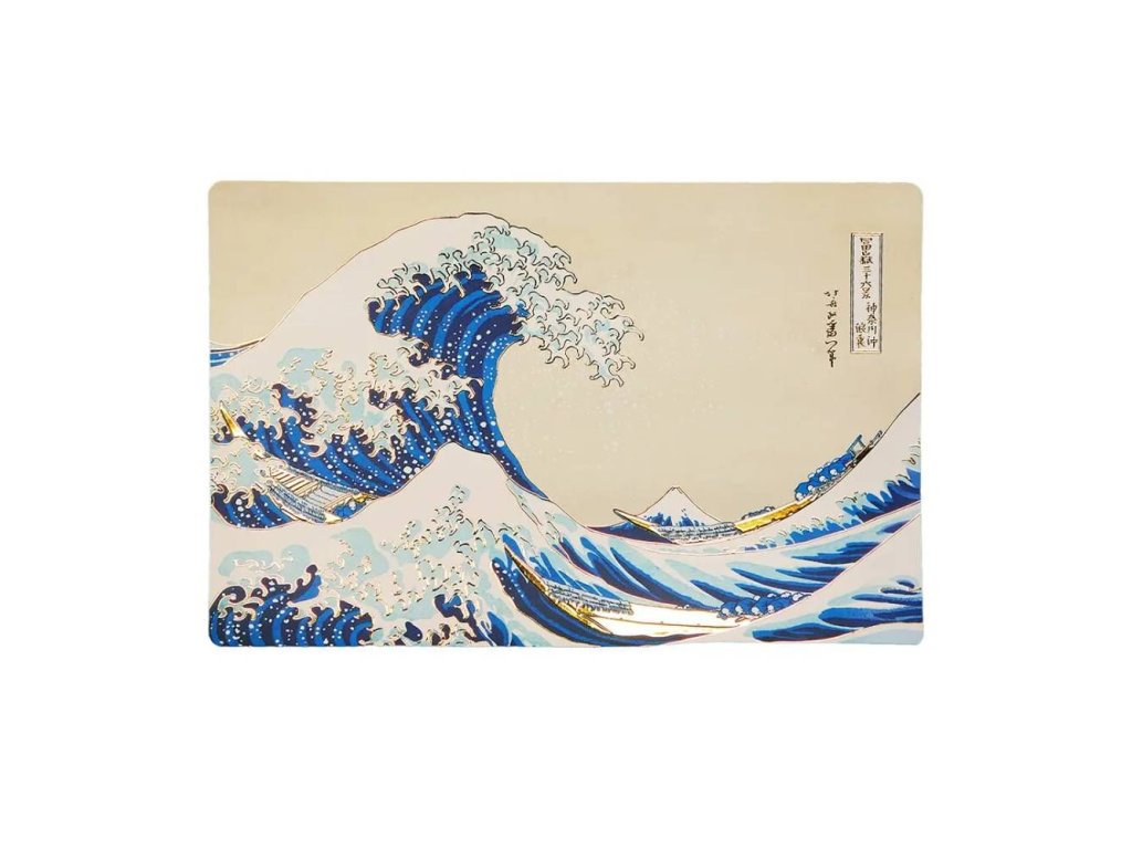 Vdýchni svojmu stolovaniu kúsok klasického japonského štýlu! Táto sada 4 prestieraní je inšpirovaná najslávnejším dielom Hokusaiho - Veľká vlna pri pobreží Kanagawy a premení každý stôl na kus umenia. Každý kúsok s rozmermi 44 x 28,5 cm je vyrobený z odolného materiálu, takže zvládne každodenné použitie aj menšie pohromy pri stole. Motív dramatickej vlny nad pokojnou horou Fudži dodá prestieranie štýl, ktorý ocenia milovníci minimalizmu, japonskej kultúry i nadčasového designu. Skvelé ako doplnok do modernej domácnosti alebo ako originálny darček pre niekoho, kto si potrpí na krásne detaily!
