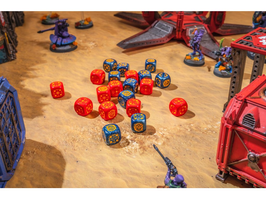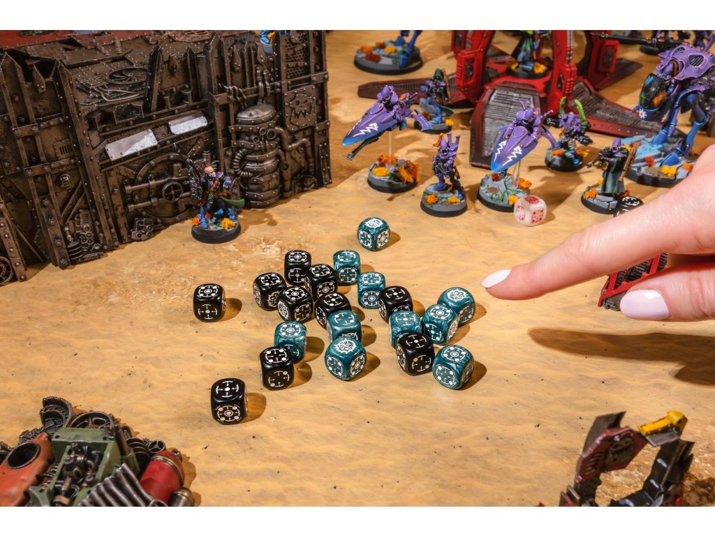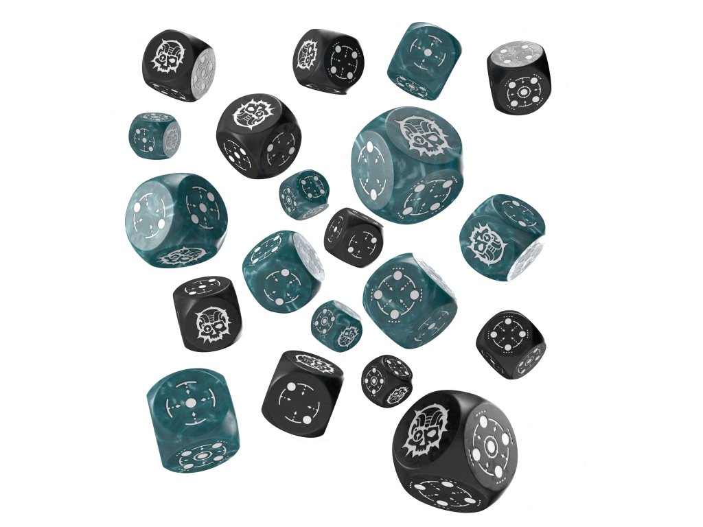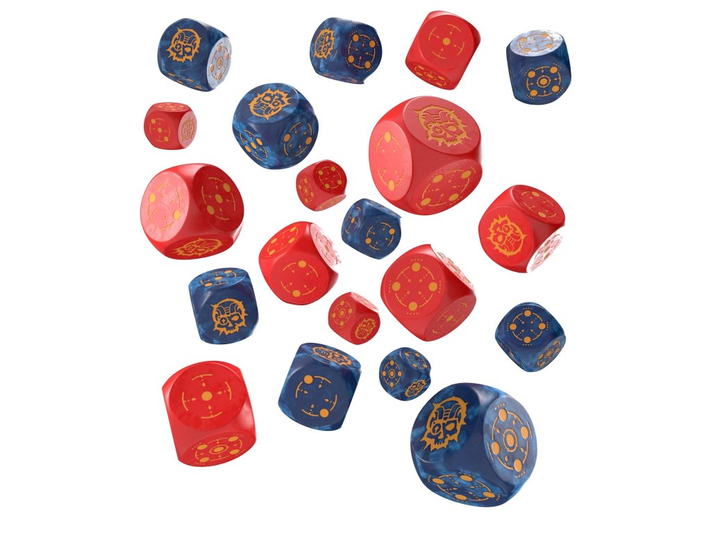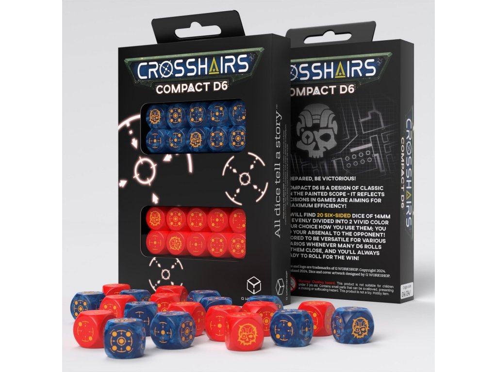 V sade nájdeš 20 pekných šesťstenných kociek so symbolmi zameriavača a kybernetickej lebky. Skvelé pre doskové a vojnové figúrkové hry alebo RPG. Všetky kocky majú 14 mm. Kocky sú v červeno-modrej a čierno-tyrkysovej farbe.