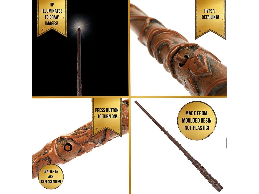 Vyzvite ostatných kúzelníkov na súboj! Táto skvelá palička Hermiony Grangerovej vytvorí za pomoci bezplatnej on-line aplikácie nezabudnuteľné svetelné efekty. Vyrieknite Lumos a smelo do bitky mágov! Napájanie pomocou 3 batérií 1,5 V AG3/LR41 (sú súčasťou balenia). Bezplatná aplikácia Wow! Stuff je vhodná pre iOS aj Android.