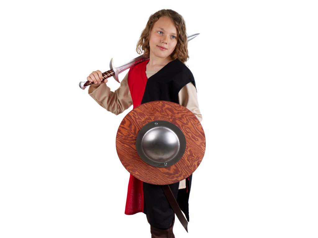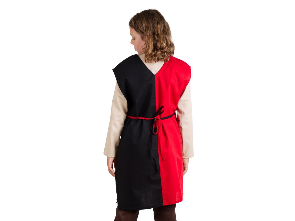 Chystá sa vaše dieťa na letný tábor, karneval či maškarný? Vylaďte jeho kostým k dokonalosti! Tabard sa používal už v stredoveku. Nosili ho nielen mušketieri, peší vojaci, ale aj roľníci a mnísi. Tabard pre deti tak predstavuje základný pilier historického kostýmu, ktorý potom môžete vyšperkovať podľa svojho gusta. Detský tabard je ušitý zo 100% bavlny ako voľná tunika, ktorá je po stranách otvorená. Stačí si ho obliecť cez hlavu, zviazať šnúrkami, ktoré ponúkajú viacero variantov na zaväzovanie, a môže vaša ratolesť vyraziť na karneval, do bitky alebo na zmrzku. Tabard pre deti je rovnaký z prednej i zadnej strany, v prípade nejakého nechceného ušpinenia, napríklad od tej zmrzliny, stačí tabard. Naše krajčírky mysleli naozaj na všetko. Nevyhovuje vám červeno-čierna farebná kombinácia? Mrknite na ďalšie dve farebné varianty, ktoré pre vás máme: modro-biela, béžovo-zelená.