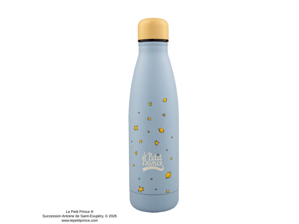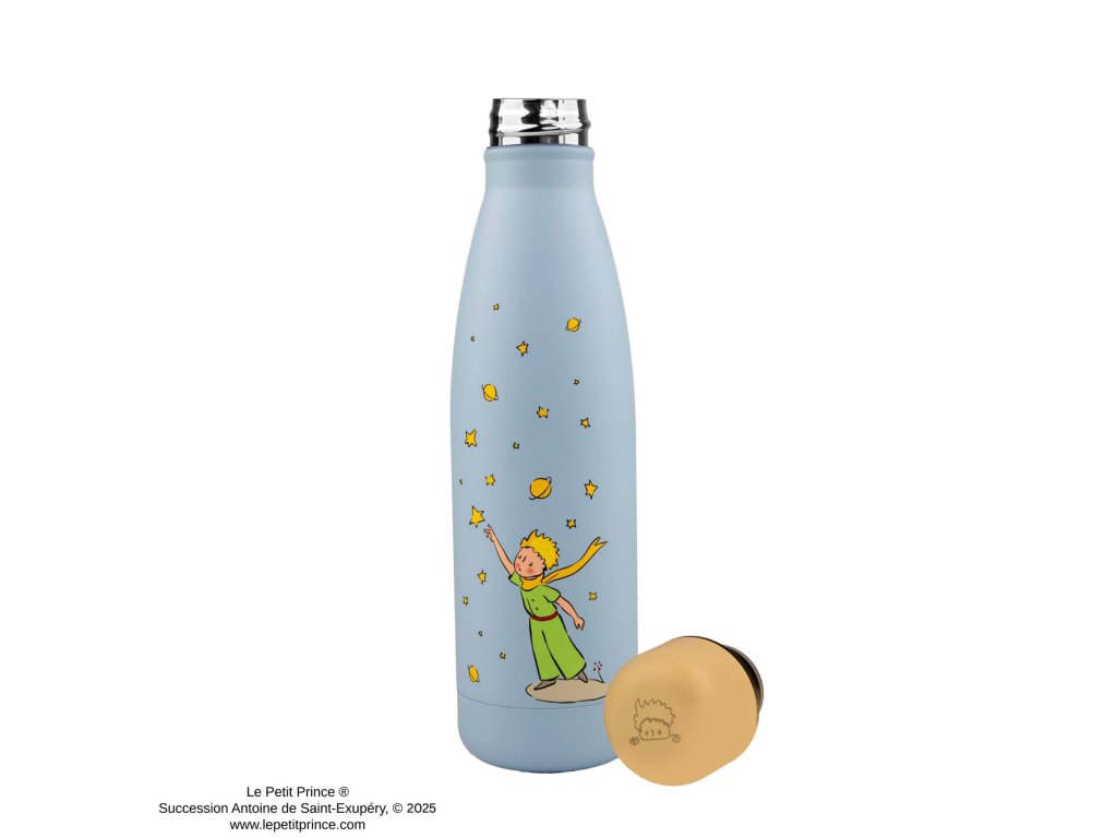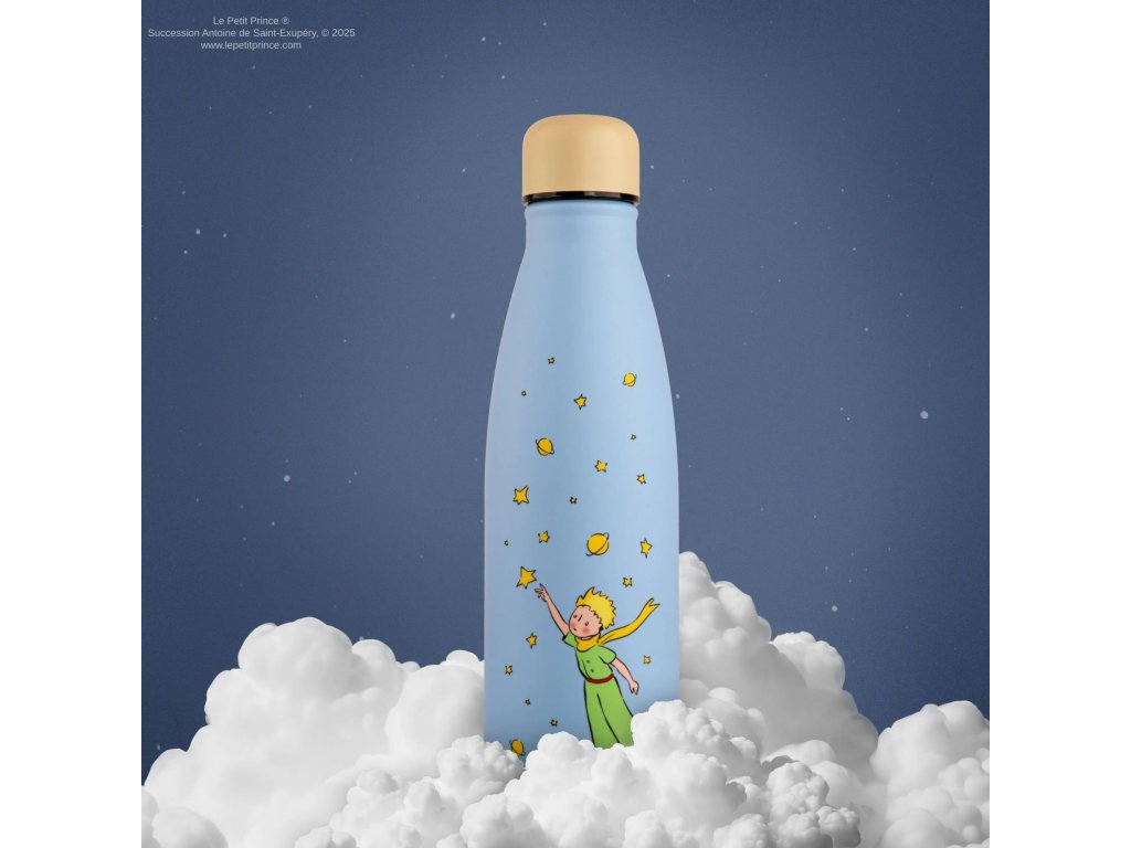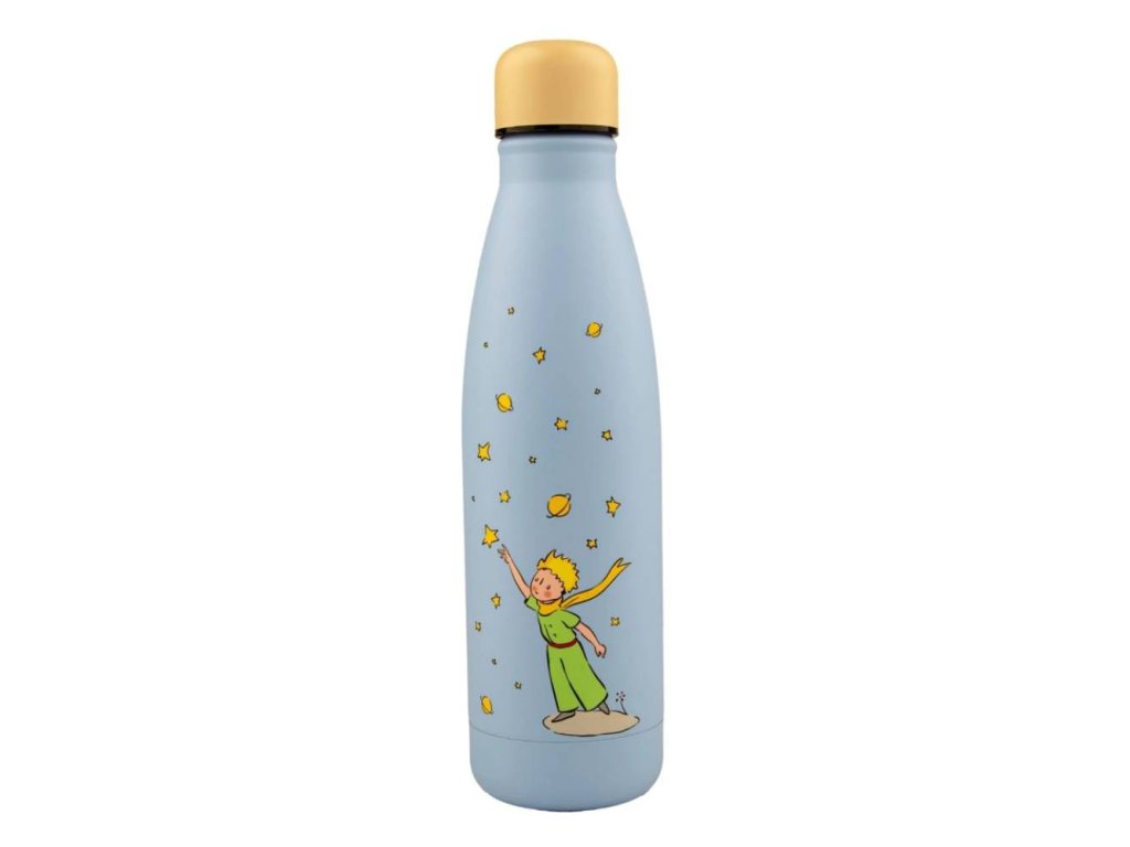 Nechaj sa každý deň inšpirovať príbehom Malého princa. Táto dizajnová termofľaša v jemnej modrej farbe s pastelovo žltým viečkom. Prednú stranu zdobí ikonický motív princa siahajúceho ku hviezdam. Vďaka dvojstennej nerezovej konštrukcii udržia nápoje horúce alebo studené po celé hodiny. Perfektný spoločník na cesty, do školy, do práce alebo na chvíle pokoja s knižkou! Fľaša nie je vhodná do mikrovlnnej rúry ani do umývačky riadu.