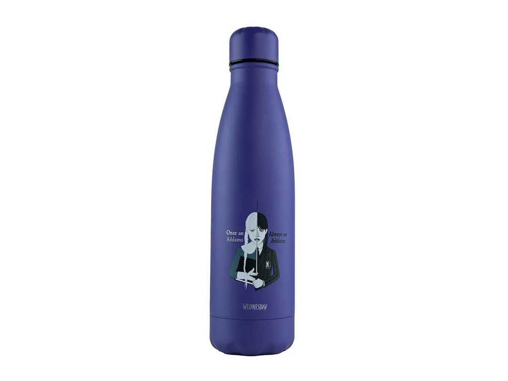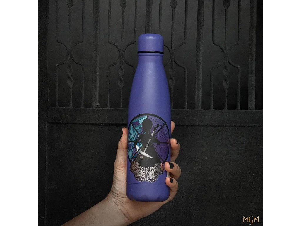 Nerezová fľaša s vodotesným uzáverom a Wednesday Addamsovou hrajúcou na cello bude pekným darčekom aj praktickým spoločníkom do školy, do práce alebo na cesty. Fľaša udrží váš nápoj studený alebo teplý až 15 hodín.