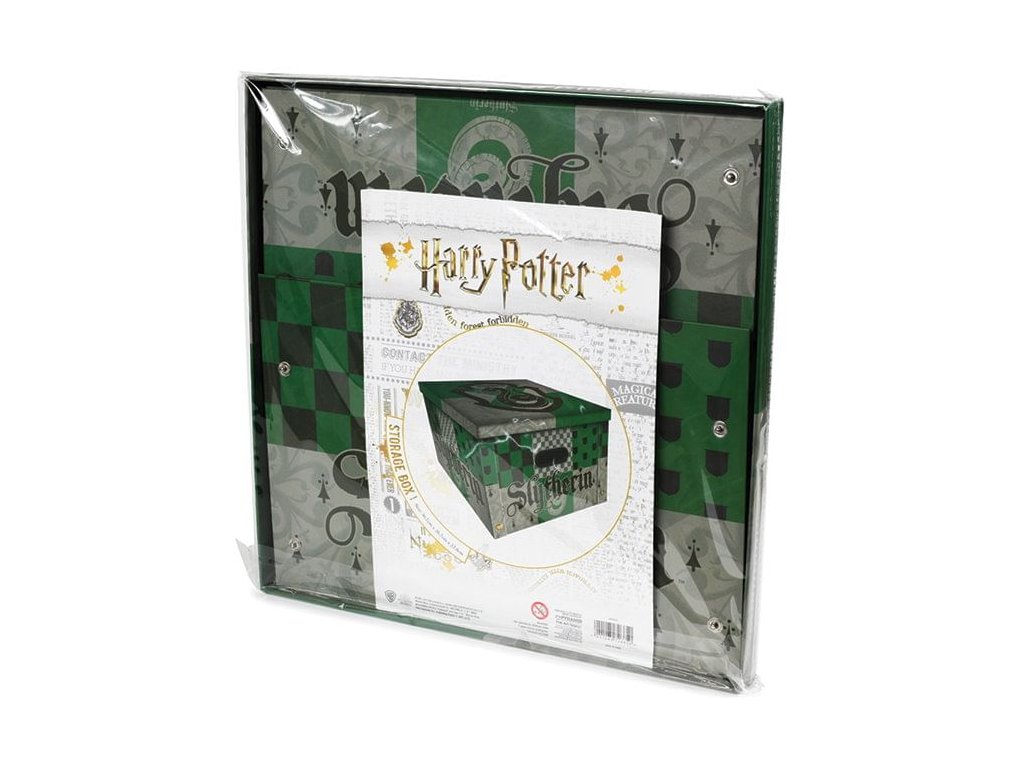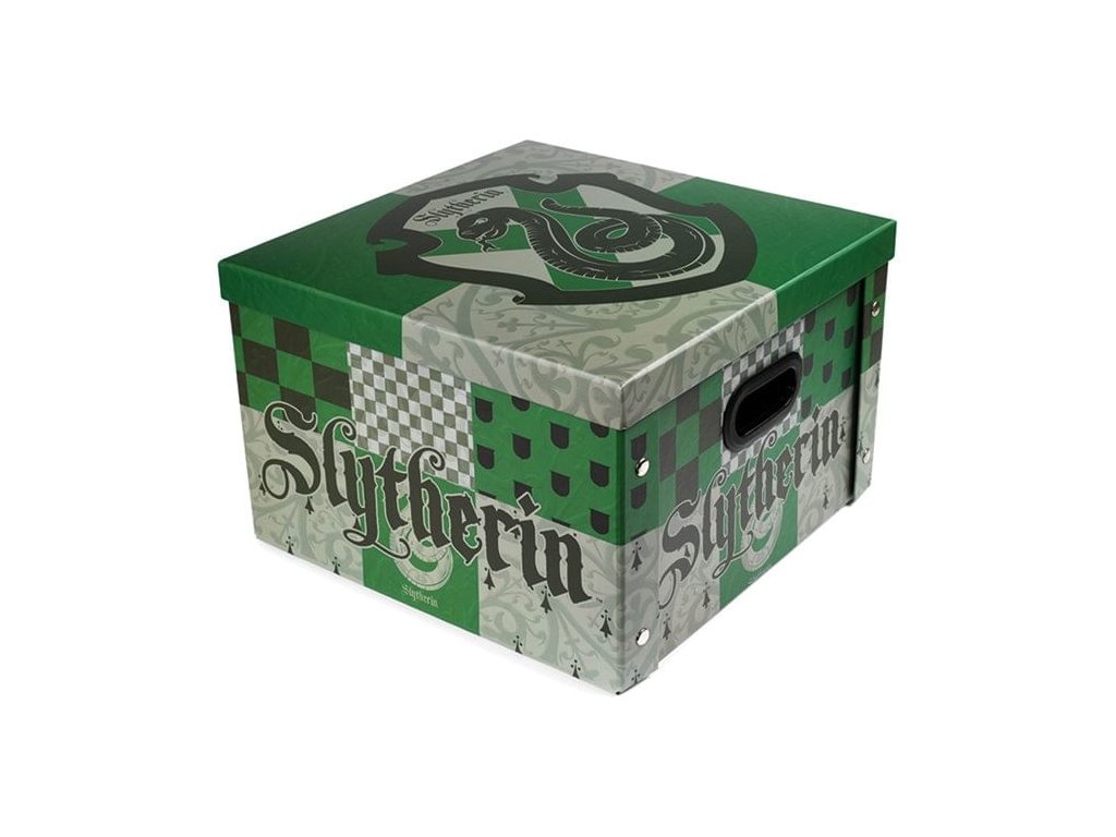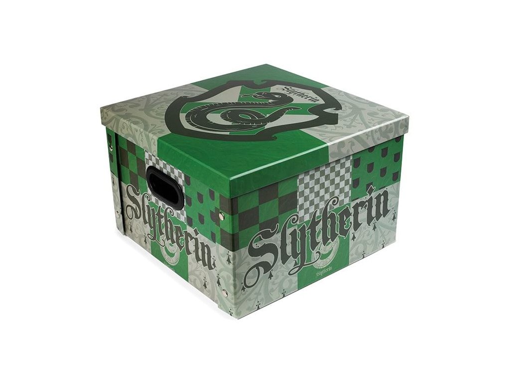 Zverte svoje školské či kancelárske potreby, knihy, oblečenie alebo čokoľvek ďalšie do starostlivosti tejto peknej papierovej krabice s grafikou bradavickej koľaje Slizolin. Skvelý doplnok domácnosti pre fanúšikov príbehov Harry Pottera!