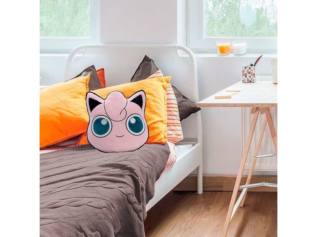 Pohodlný vankúšik v tvare hlavy roztomilého Pokémona Jigglypuffa urobí radosť každému malému aj veľkému trénerovi Pokémonov. Položte si naňho hlavu a nechajte sa ukolísať k spánku podobne ako jeho spevom. Urobte si radosť parádnym prešívaným vankúšikom, ktorý bude ozdobou vašej pohovky alebo izbičke.