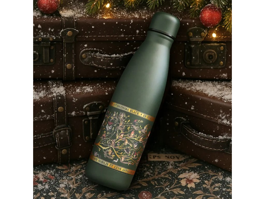 Táto termofľaša s motívom rodokmeňa kúzelníckej rodiny Blackovcov poteší každého milovníka sveta Harryho Pottera. Je vyrobená z kvalitnej nerezovej ocele a jej objem je 750 ml. Či už ťa čaká deň v škole, práci alebo na metlobalovom tréningu, tvoj nápoj zostane presne taký, aký má byť! Fľaša udrží teplotu tvojho obľúbeného pitia až 15 hodín. Táto termofľaša nie je vhodná do mikrovlnnej rúry ani do umývačky riadu.