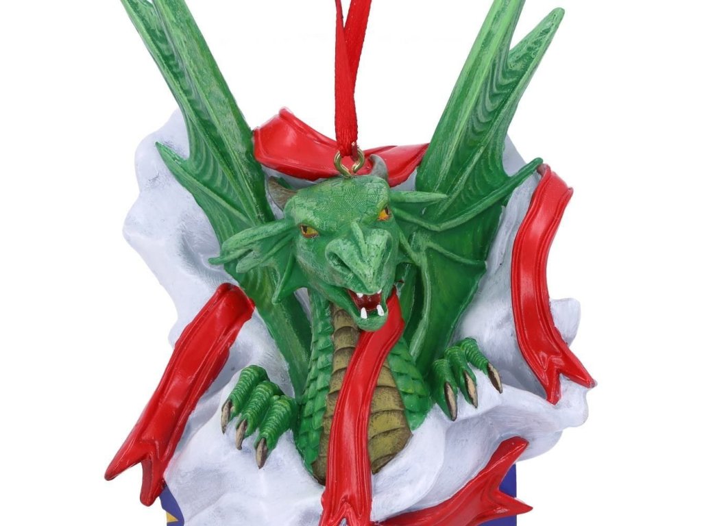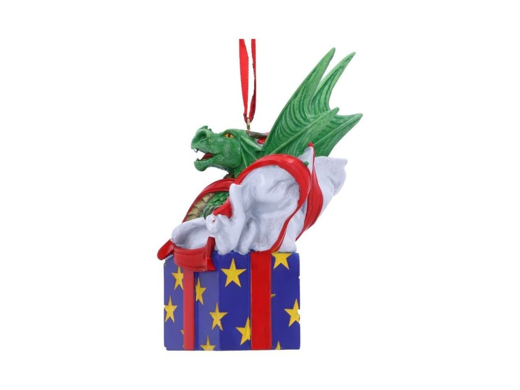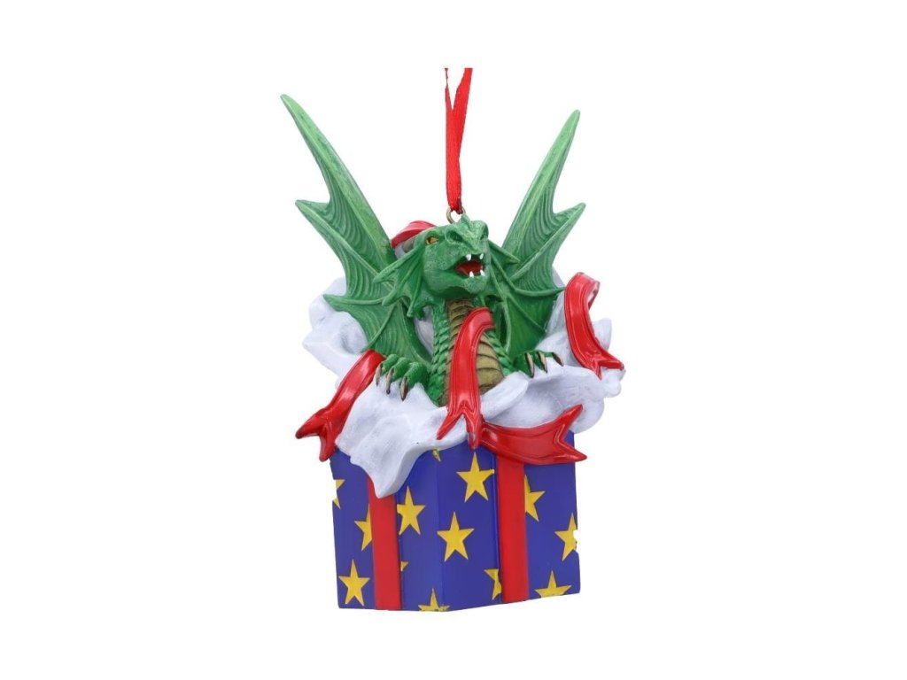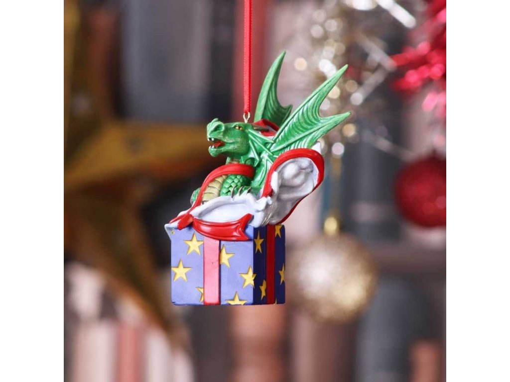 Váš vianočný stromček sa chystá navštíviť nečakaný hosť! Krásna ozdoba v podobe darčeka, z ktorého sa klube zelený drak. Správna sviatočná dekorácia pre všetkých drakomilcov!