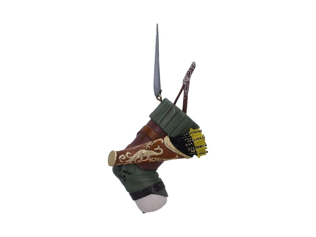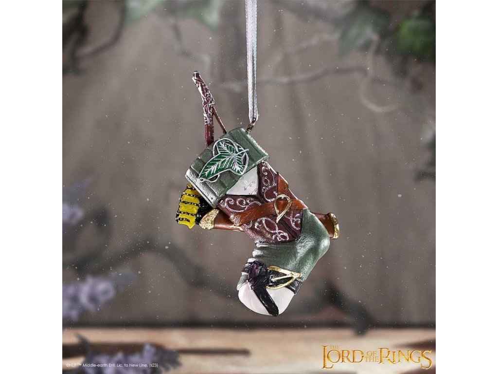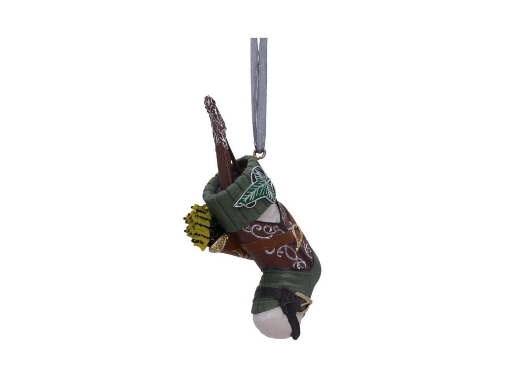 Oslávte Vianoce v štýle Stredozeme! Vianočná ozdoba pre fanúšikov Pána prsteňov je venovaná Legolasovi - základ tvorí machovo zelený elfí plášť a zdobená tunika, nechýba dlhý lúk so šípmi a lóriensky lístok.