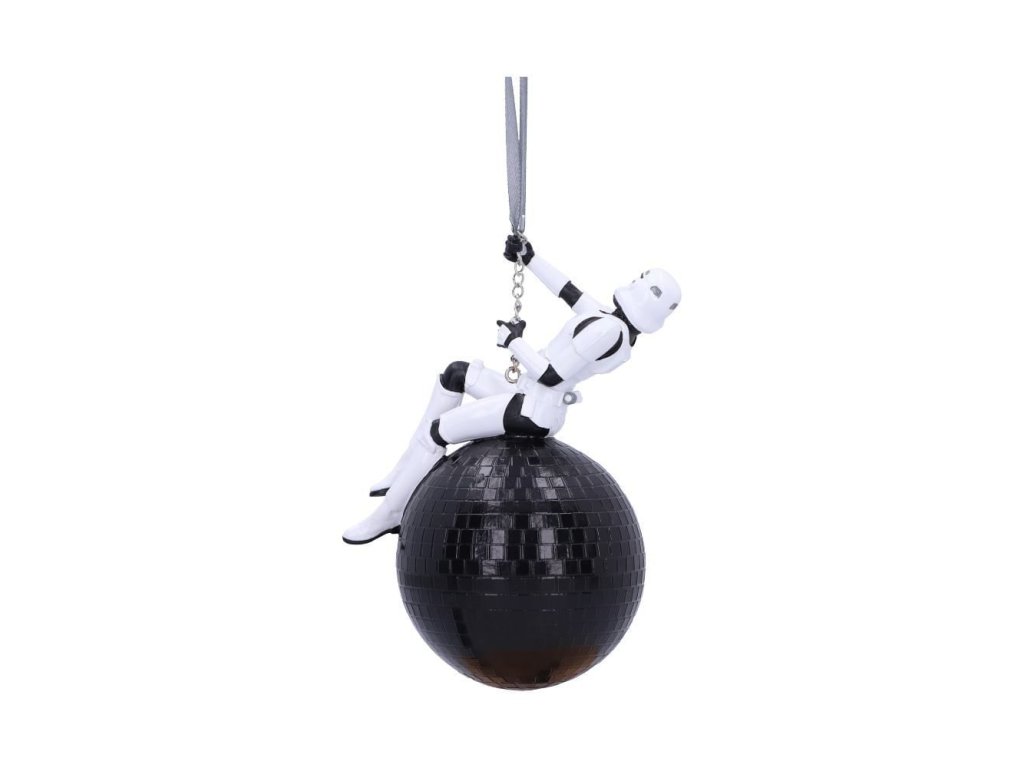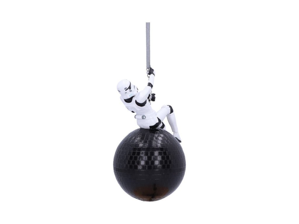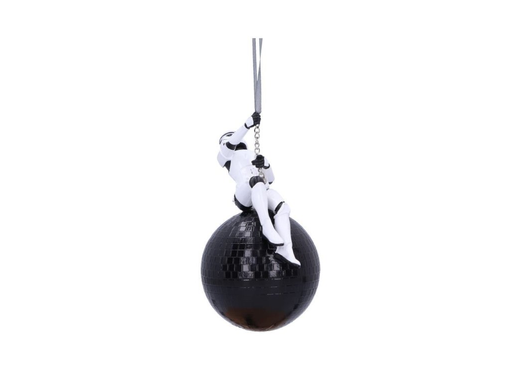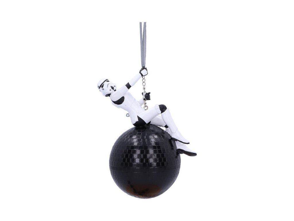 Originálna vianočná ozdoba pre fanúšikov Star Wars - Hviezdnych vojen so Stormtrooperom zaveseným v pozícii Miley Cyrus na demolačnej disco guli. Ozdoba nielen pre imperiálny stromček!