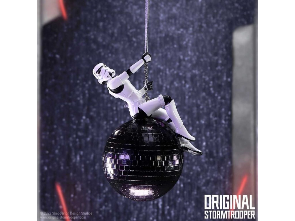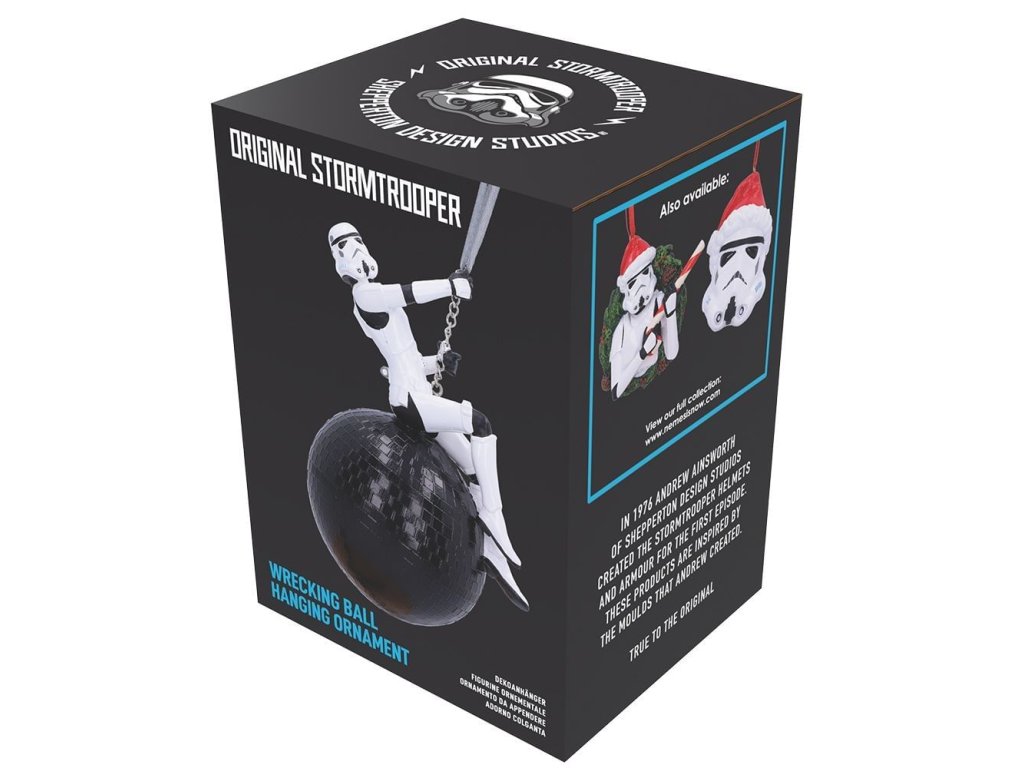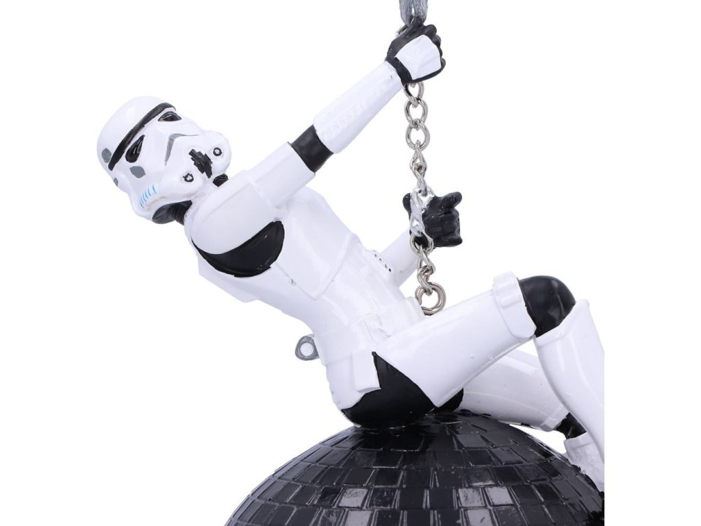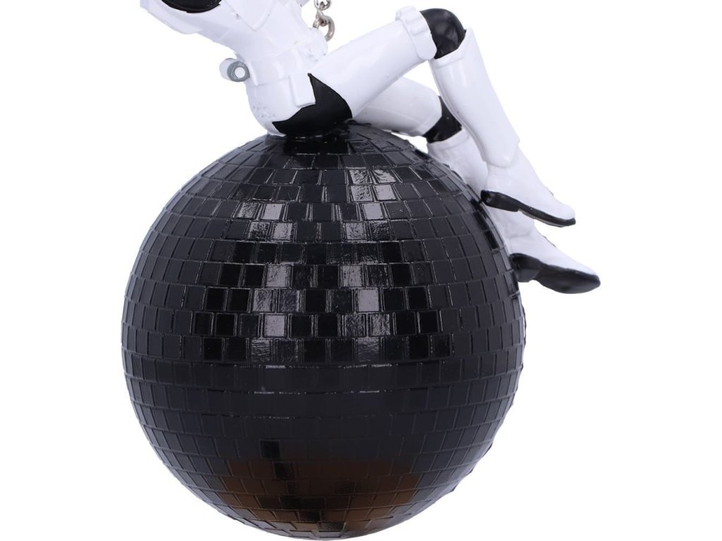Originálna vianočná ozdoba pre fanúšikov Star Wars - Hviezdnych vojen so Stormtrooperom zaveseným v pozícii Miley Cyrus na demolačnej disco guli. Ozdoba nielen pre imperiálny stromček!