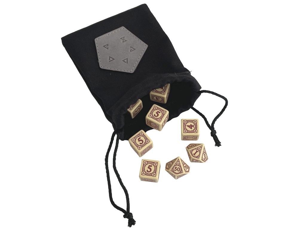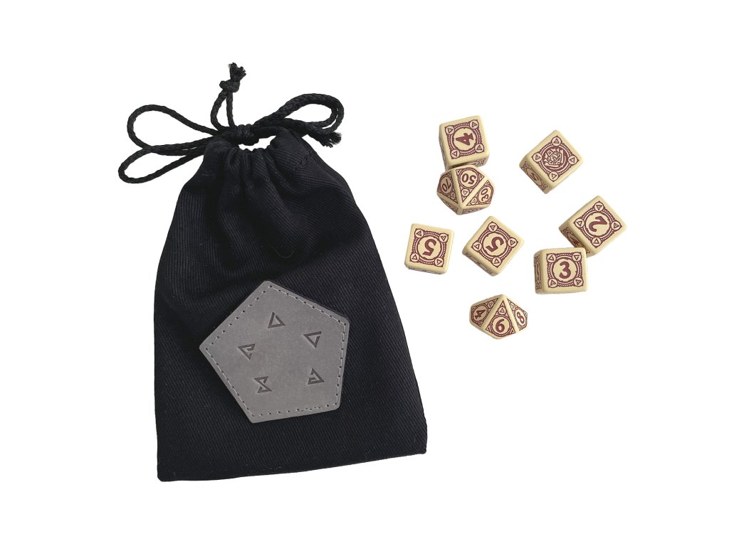 Jednoduchý a praktický bavlnený vačok s koženým zdobením s raženými zaklínačskými symbolmi je nevyhnutnosť pre každého zaklínača! Vačok je vyrobený v našej dielni. Bez problémov do neho schováš mince alebo kocky pre RPG Zaklínač: Hra na hrdinov. Vačok sa zväzuje tenkou čiernou šnúrkou, takže sa nemusíš báť, že ti tvoje poklady vypadnú.