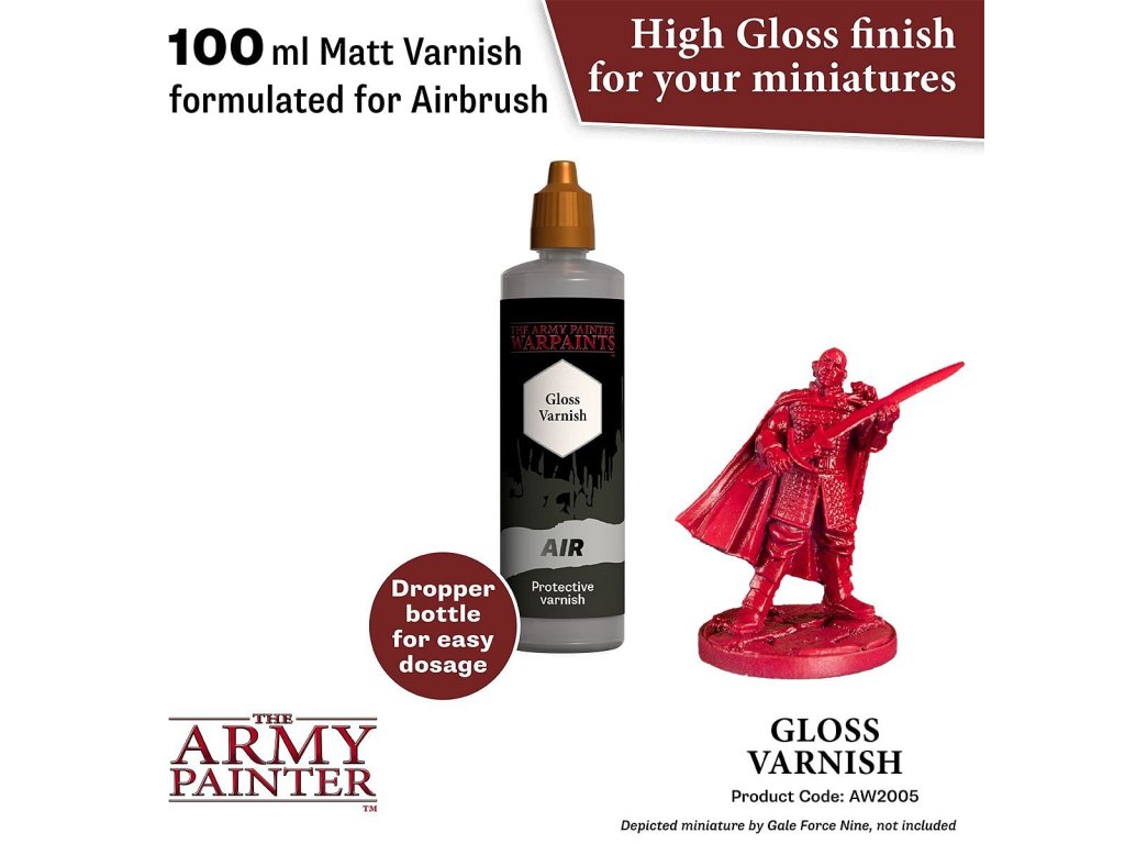Warpaints Air: Gloss Varnish je lesklý lak na ochranu vašich figúrok a miniatúr od spoločnosti Army Painter. Balenie obsahuje 100 ml.