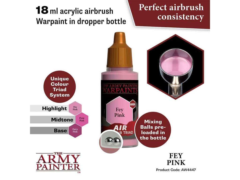 Vysoko kvalitná akrylová farba Warpaints Air Fey Pink určená na aplikáciu striekacou pištoľou - airbrush. Vhodná pre miniatúry akéhokoľvek druhu. Obsahuje 18 ml farby.