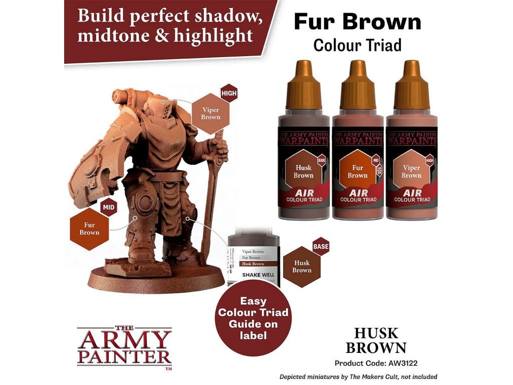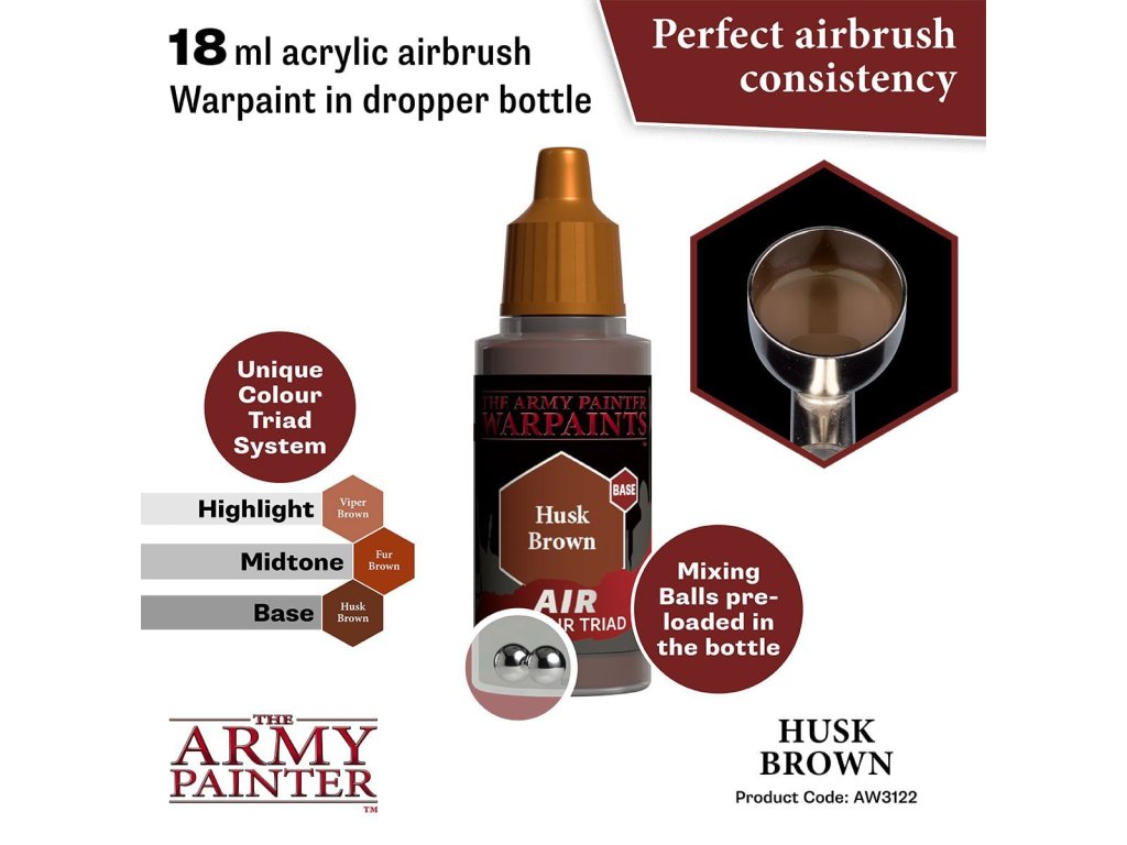 Vysoko kvalitná akrylová farba Warpaints Air Husk Brown určená na aplikáciu striekacou pištoľou - airbrush. Vhodná pre miniatúry akéhokoľvek druhu. Obsahuje 18 ml farby.