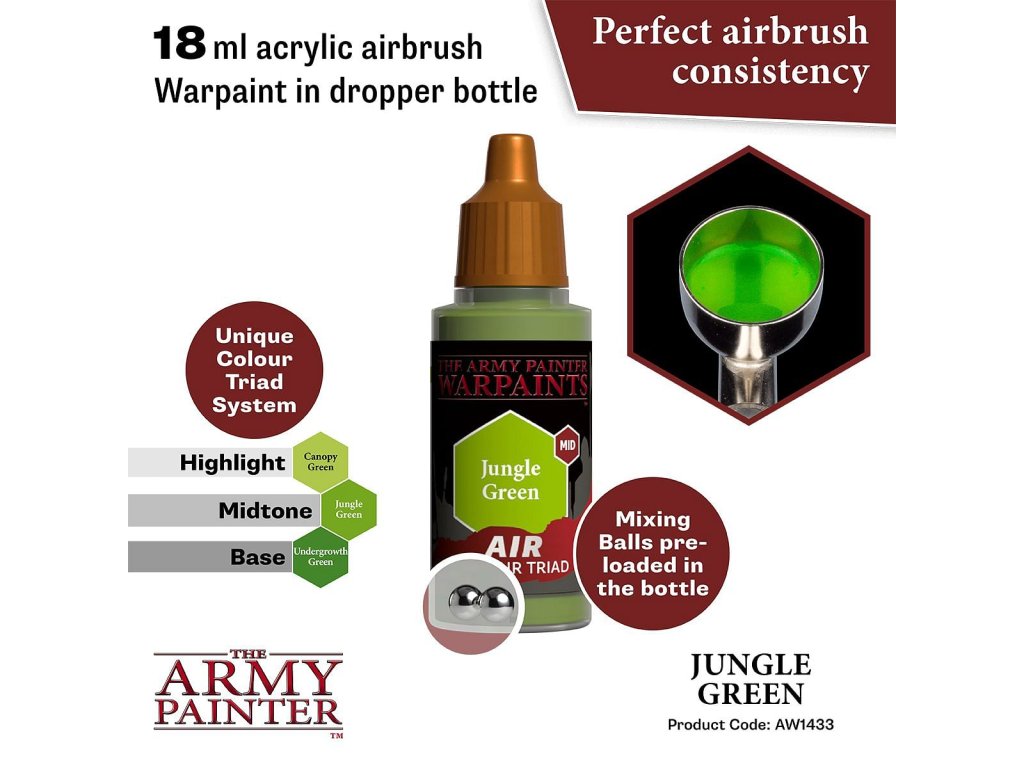 Vysoko kvalitná akrylová farba Warpaints Air Jungle Green určená na aplikáciu striekacou pištoľou - airbrush. Vhodná pre miniatúry akéhokoľvek druhu. Obsahuje 18 ml farby.