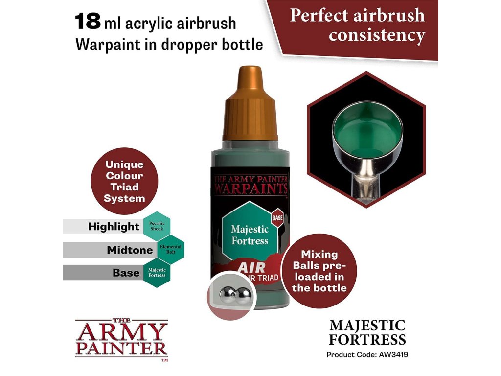 Vysoko kvalitná akrylová farba Warpaints Air Majestic Fortress určená na aplikáciu striekacou pištoľou - airbrush. Vhodná pre miniatúry akéhokoľvek druhu. Obsahuje 18 ml farby.