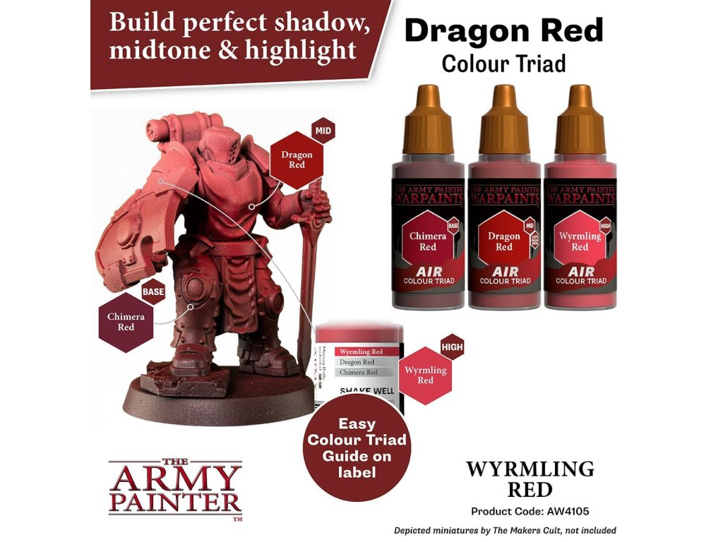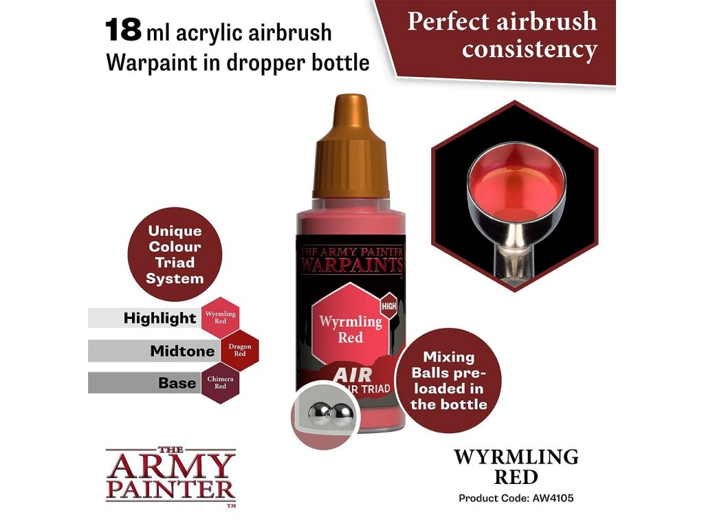Vysoko kvalitná akrylová farba Warpaints Air Wyrmling Red určená na aplikáciu striekacou pištoľou - airbrush. Vhodná pre miniatúry akéhokoľvek druhu. Obsahuje 18 ml farby.