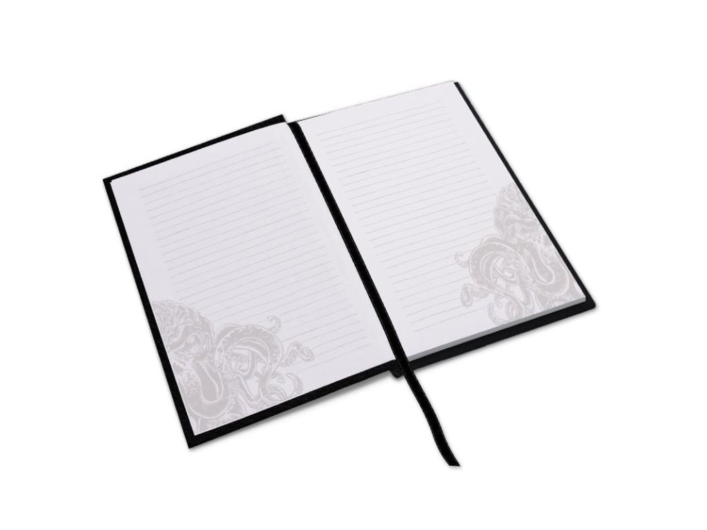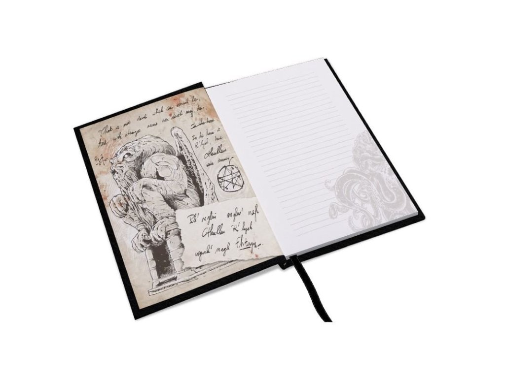 Tento zápisník v pevnej väzbe s grafikou Necronomiconu od Abdula al-Hazreda bude dobre slúžiť všetkým, ktorí sa vydajú v jeho šľapajach, rovnako ako každému správnemu vyšetrovateľovi pátrajúcemu po Prastarých božstvách, vrátane Cthulhu! Zápisník má záložku a 180 linkovaných strán, opatrených v spodnej časti štýlovými ilustráciami.