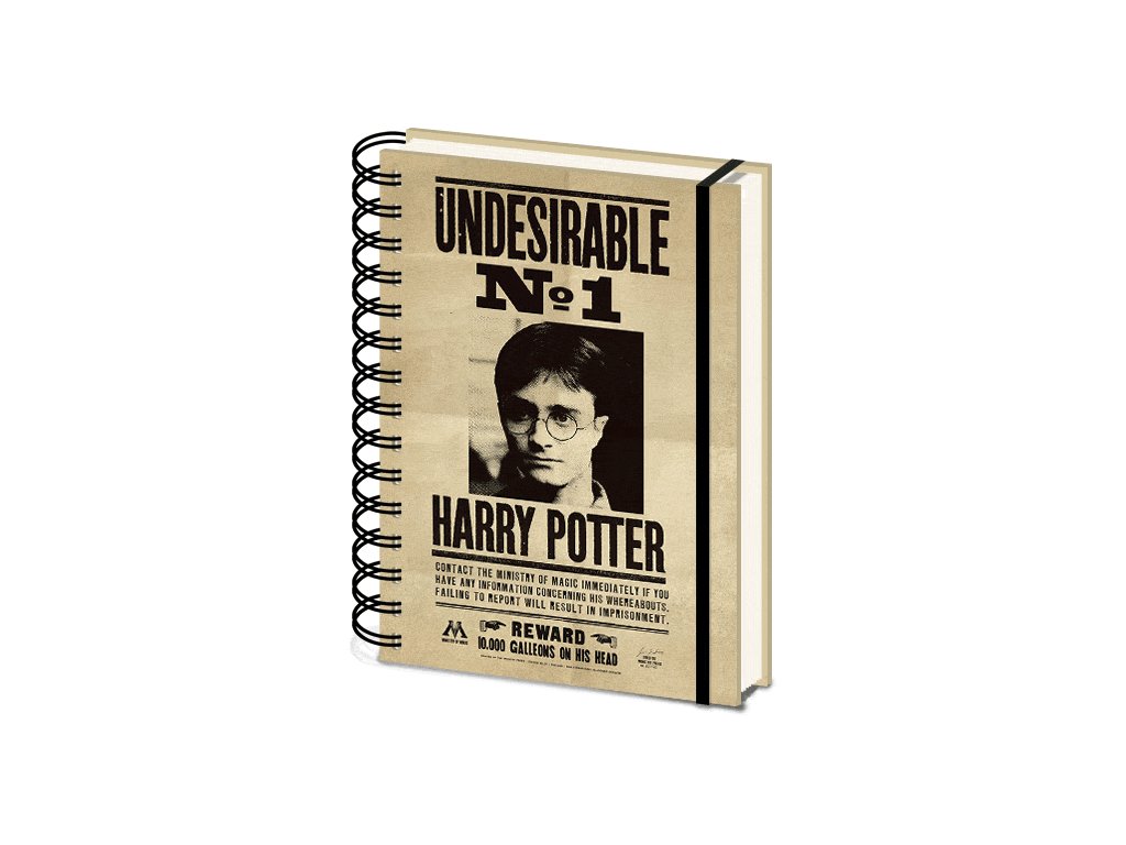 Štýlový zápisník v krúžkovej väzbe má pevné dosky s jedinečným 3D efektom, kedy sa na jeho obale menia postavy Harryho Pottera a Siriusa Blacka z obľúbených filmov a kníh o čarodejníckom učni z Rokfortu. Zápisník je linajkový.