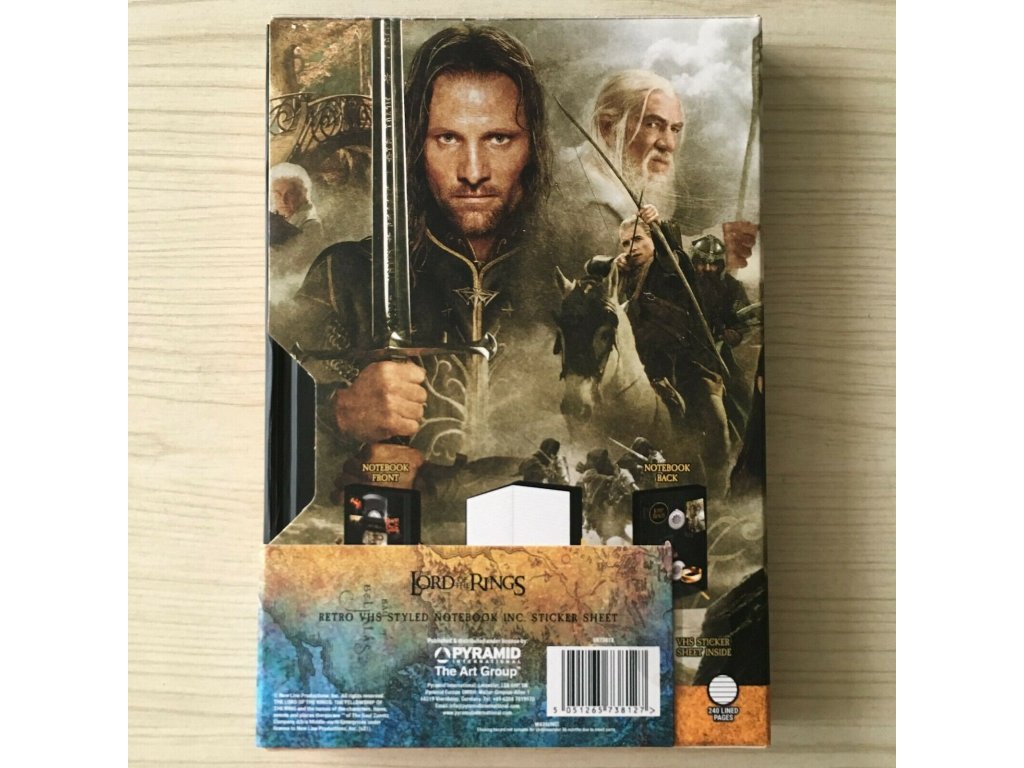 Linkovaný zápisník pre milovníkov fantasy trilógie Pán prsteňov má podobu klasickej VHS kazety, na obale ktorej nájdete napr. Frodo Vrecúška, Gluma, Sarumana alebo okrídlené Nazguly.