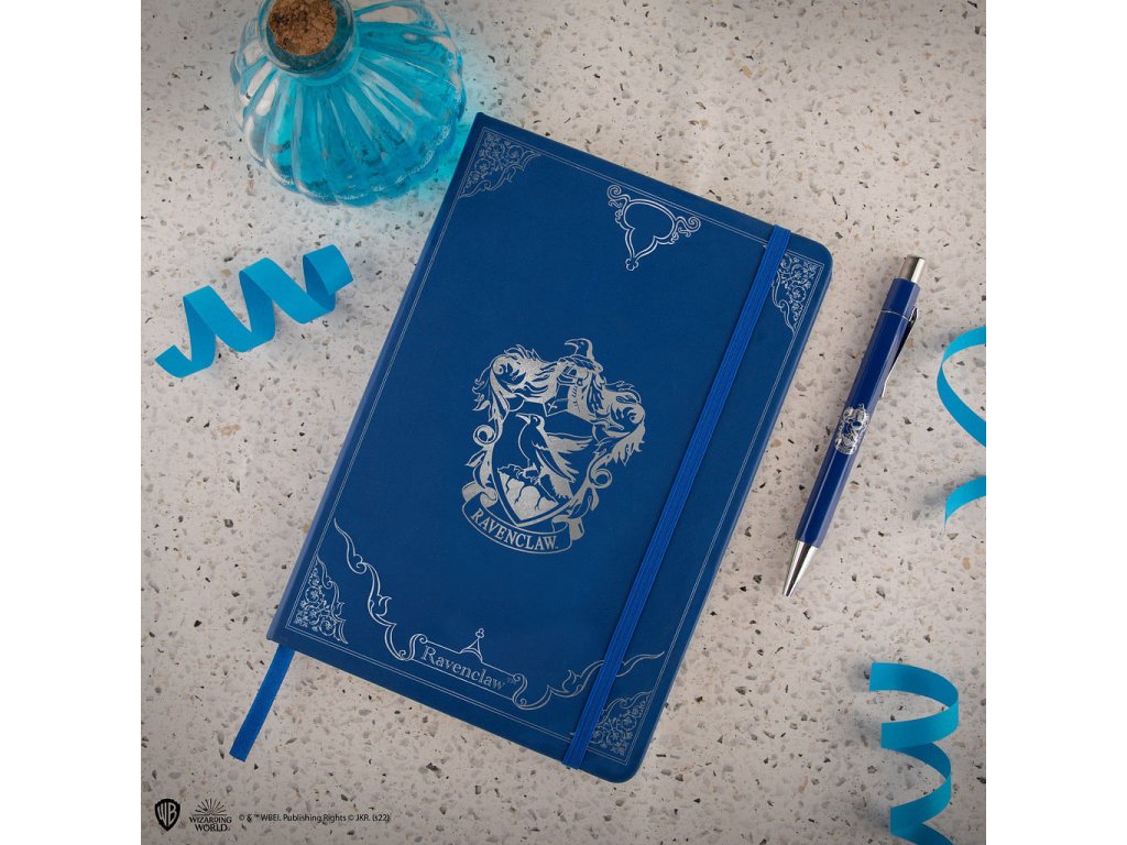 Zápisník s perom Harry Potter – Havraspár, anglicky Ravenclaw, je dokonalý kúzelnícky doplnok pre každého, kto patrí do tejto koľaje plnej inteligentných a sčítaných študentov. Štýlová sada obsahuje elegantný zápisník so stužkovou záložkou, motívom bradavickej koľaje a perá v tradičných modro-strieborných farbách. Zápisník má kombinované stránky - linajkované aj čisté, takže sa hodí ako na poznámky, tak na kresby alebo plánovanie dobrodružstva. Všetko je starostlivo zabalené v darčekovej krabičke, pripravené potešiť každého fanúšika sveta Harryho Pottera.