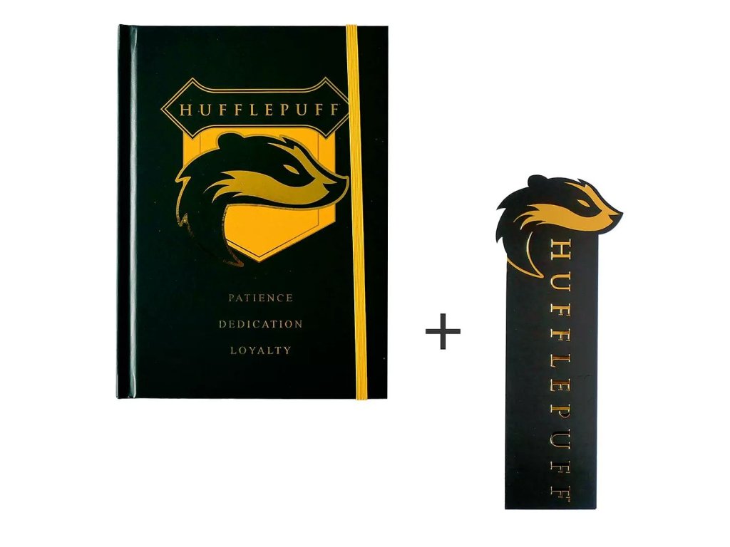 Krásny zápisník v pevných doskách so symbolom koľaje Bifľomor z Harryho Pottera a štýlová papierová záložka v jednom! Skvelý darček pre malých aj veľkých kúzelníkov z Rokfortu.