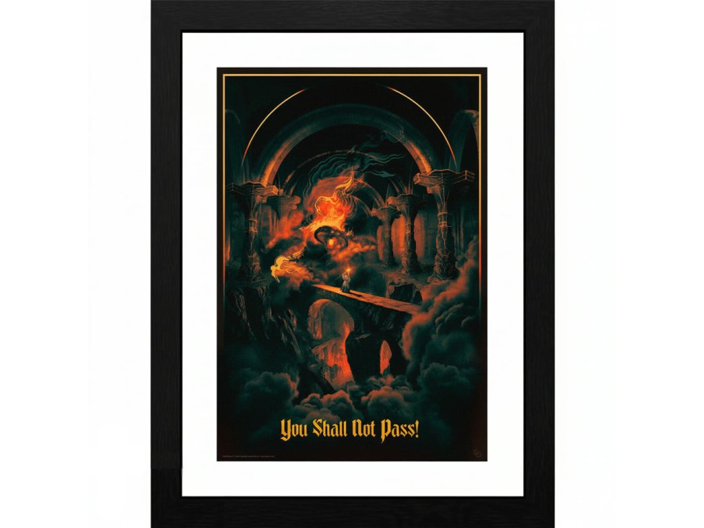 V srdci Morie, na mostíku v Khazad-dom, čelí Gandalf strašnému Balrogovi. Zaves si doma alebo v pracovni tento slávny výjav z Pána prsteňov spolu s legendárnym výrokom: You Shall Not Pass! - Neprejdeš ďalej! Obraz na kvalitnom fotografickom papieri má rozmer 30 x 40 cm a nachádza sa v ráme o šírke 2,5 cm.