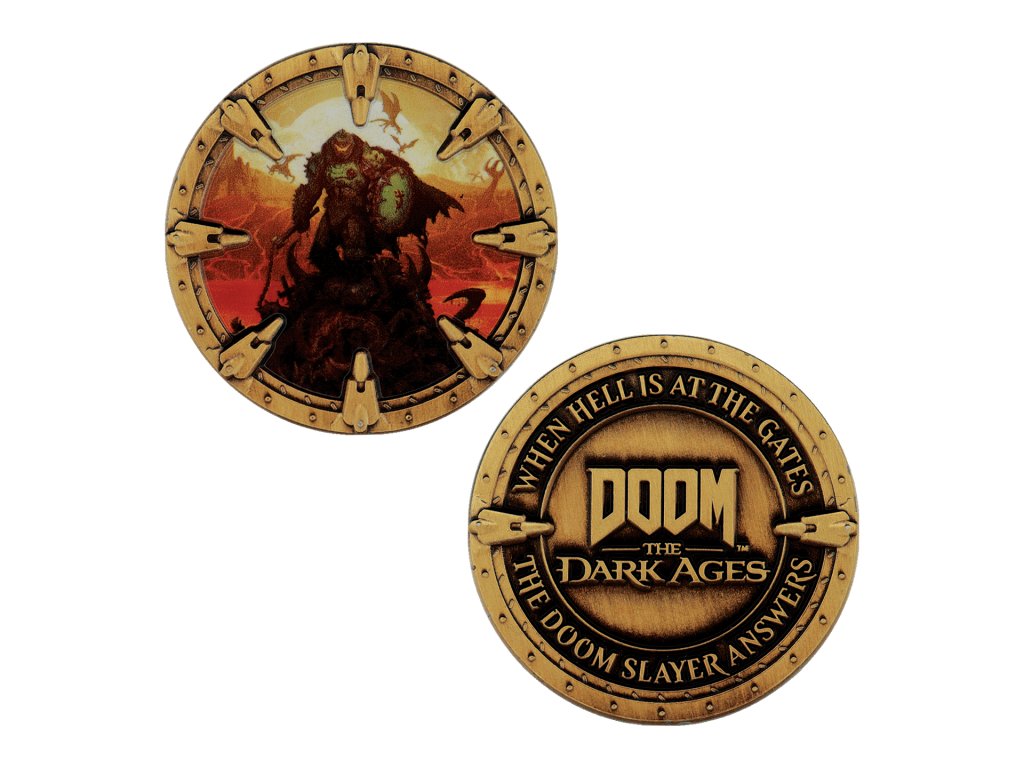 Postav sa a bojuj! Toto je tvoja šanca vlastniť oficiálnu zberateľskú mincu Doom: The Dark Ages – drsnú poctu Slayerovi z novej éry DOOMu. Minca má priemer 38 mm, je obojstranná a na lícnej strane nájdeš detailné vyobrazenie Slayera, orámované štítom inšpirovaným edíciou Deluxe. Rubová strana potom nesie výrazné logo The Dark Ages. Každý kus je jedinečne číslovaný a uložený v ochrannom akrylovom púzdre - pripravený na vystavenie alebo pridanie do zbierky. Oficiálne licencované. K dispozícii iba 9995 ks po celom svete.