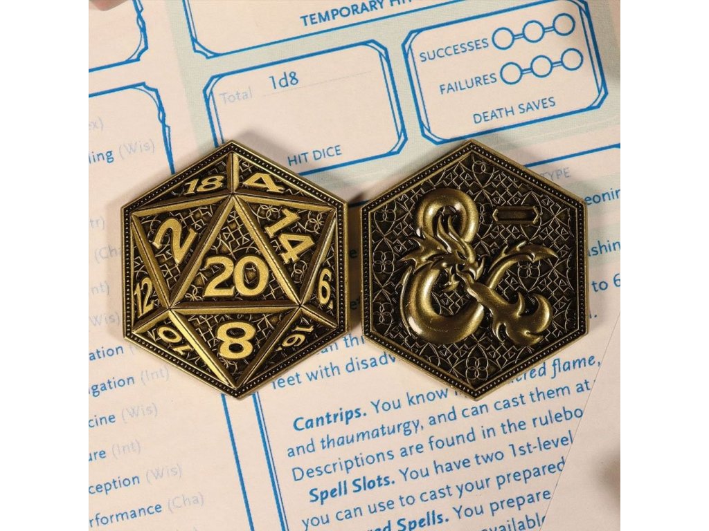 Zberateľská minca v podobe dvadsaťstennej kocky zo svetovo preslávenej hry na hrdinov Dungeons and Dragons pristane zbierke každého hráča, fanúšika a milovníka týchto skvelých RPG! Mince je súčasťou celosvetovo limitovanej série obsahujúcej 9 995 ks, každý kus je na zadnej strane individuálne očíslovaný.