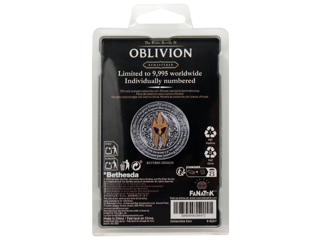 Zberateľská minca The Elder Scrolls IV: Oblivion - Imperial City Coin vzdáva hold mocnému srdcu Tamrielu. Na jednej strane nájdeš Imperiálny palác, na druhej ikonu prilby Cisárskej légie. Táto detailná minca s priemerom 38 mm je vyrobená v antik niklovej úprave a každá je jedinečne číslovaná na hrane. Limitované na 9 995 kusov celosvetovo, dodávané v akrylovej kapsule. Oficiálne licencovaný artefakt pre všetkých lojálnych občanov Cisárstva – aj pre tých, ktorí stále veria v odkaz Septimov.