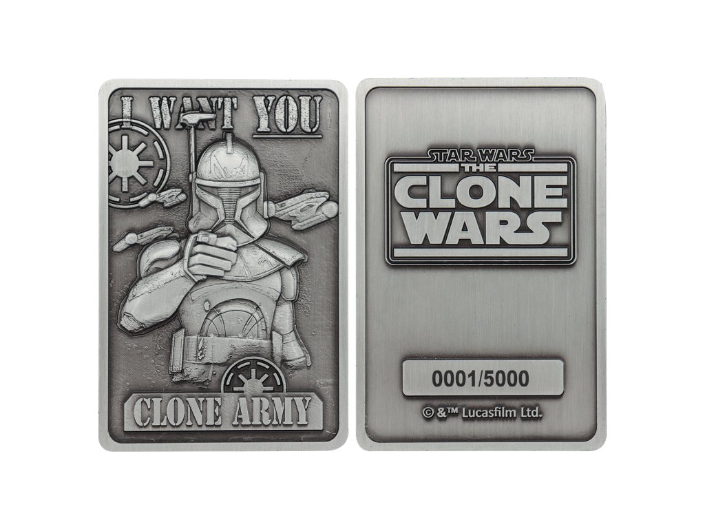 Captain Rex – CT-7567 – bol pravou rukou Anakina Skywalkera a jedným z najlojálnejších klonových vojakov Galaktickej republiky. Tento zberateľský ingot o veľkosti 49 × 74 mm zachytáva jeho podobu v štýle náborového plagátu, ktorý vzdáva hold jeho odvahe počas Klonových vojen. Každý kus je individuálne číslovaný na zadnej strane a dodávaný v elegantnej krabičke s vystavovacím stojanom. Limitované na 5 000 ks celosvetovo. Oficiálny licencovaný produkt pre každého fanúšika Star Wars, ktorý si váži hrdinstvo bez ohľadu na kódovanie.